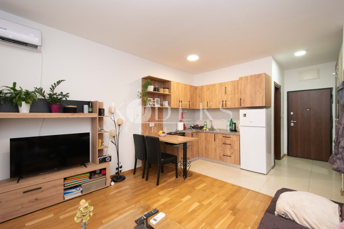 Struktura: Dnevna soba koja je povezana sa trpezarijom i kuhinjom i ima izlaz na terasu, ulazni hodnik otvorenog tipa i kupatilo.