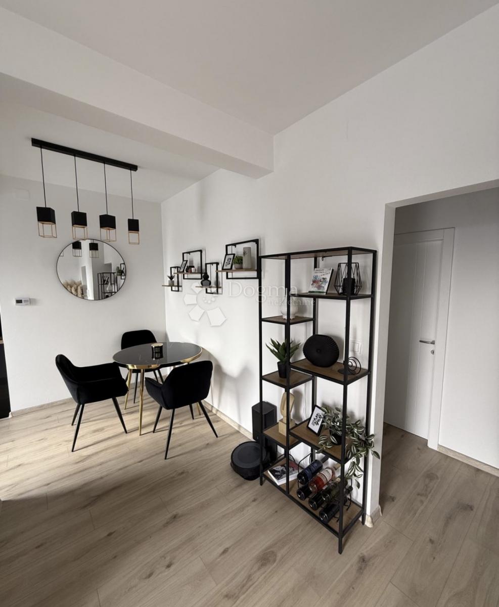 Prostor je organiziran jasno i funkcionalno. Ulaz vodi u predsoblje, iz kojeg se otvara povezan dnevni boravak s blagovaonicom i kuhinjom. Spavaći dio čine dvije odvojene sobe, a kupaonica je uređena u suvremenom stilu s kvalitetnim materijalima. Terasa je veća i omogućuje korištenje kao proširenje dnevnog prostora.
