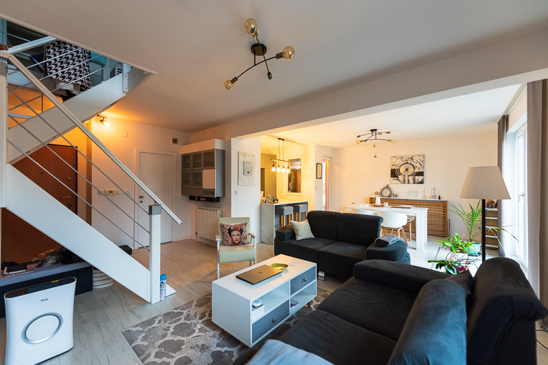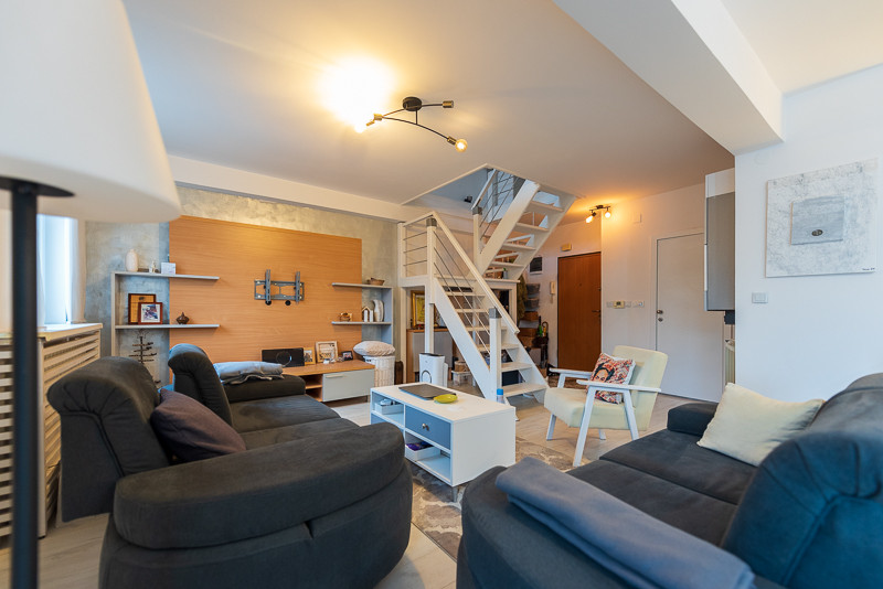 Description: A spacious, modern, and fully furnished two-level apartment of 104 m² is available for rent, located on Behdžeta Mutevelica Street in the Grbavica neighborhood, Novo Sarajevo municipality. The apartment is situated on the fifth floor of a building without an elevator and has a dual orientation (south-north), with the primary orientation facing south. The first level includes a living room, kitchen with dining area, one bathroom, and an enclosed balcony, while the second level features a bedroom, one bathroom, and a storage/wardrobe room. The apartment has gas heating and offers a comfortable and functional living space, ideal for a family or individuals seeking a spacious, modern, and fully equipped home. The Grbavica neighborhood offers numerous advantages: a quiet and safe environment, proximity to schools, kindergartens, shops, and public transport, as well as excellent connectivity to the city center. An ideal location for a comfortable and convenient lifestyle. More information is available upon request.