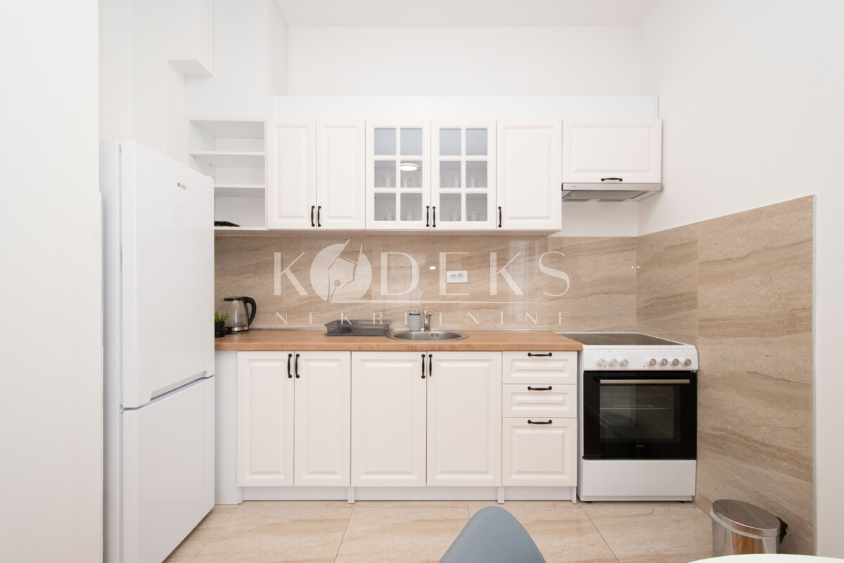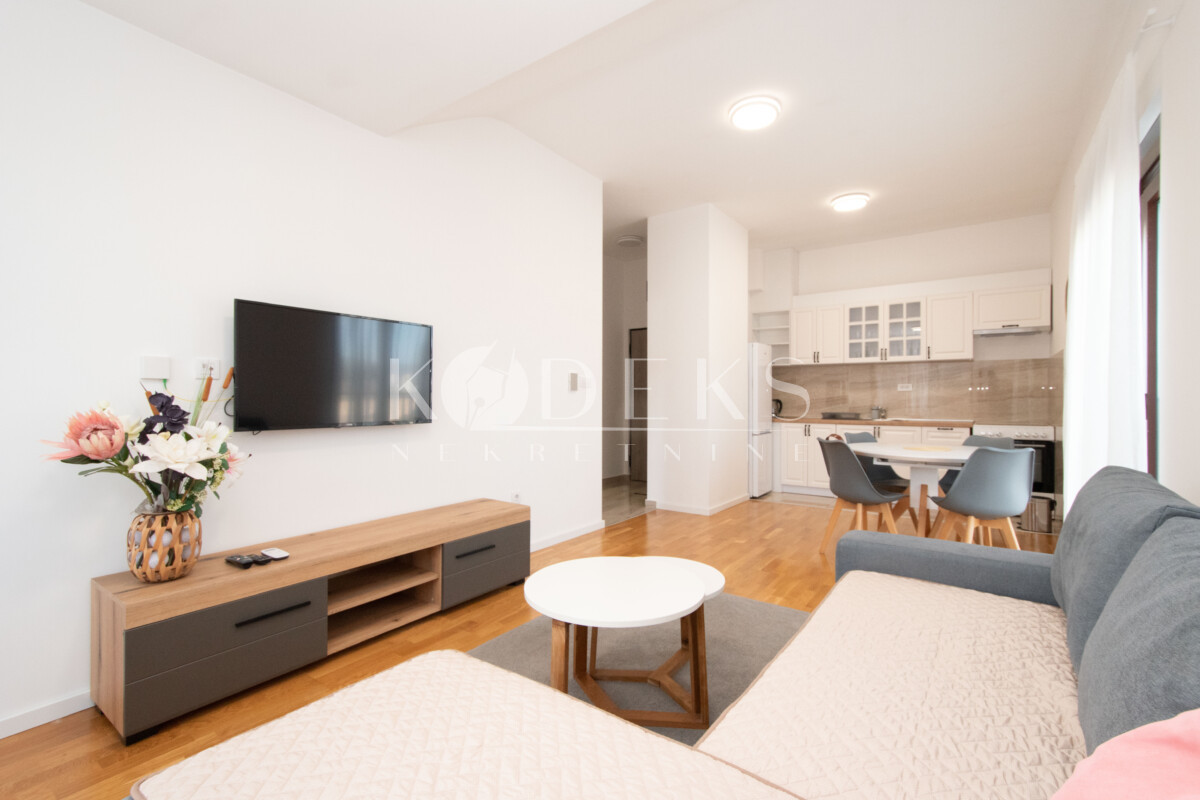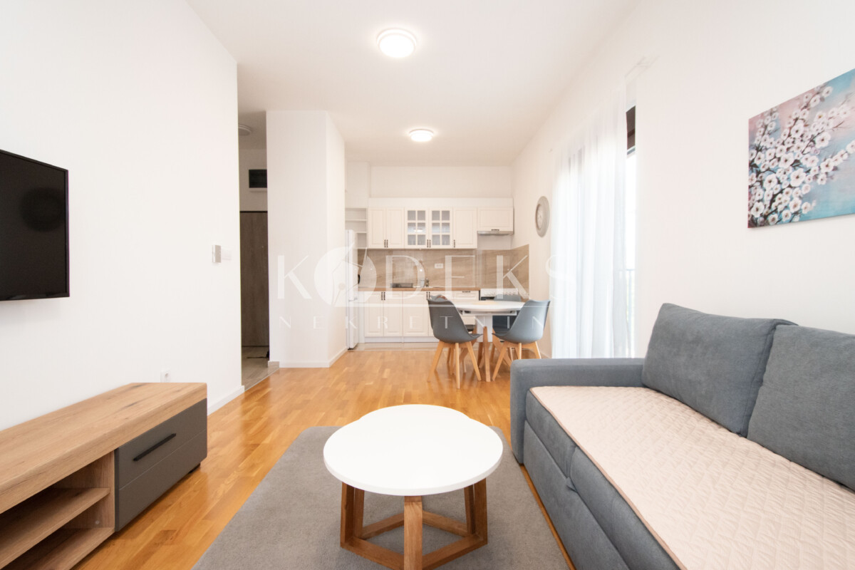 Description: Izdaje se lijepo namješten jednosoban stan smješten na trećem (posljednjem) spratu zgrade u Garden compleksu na Zabjelu.