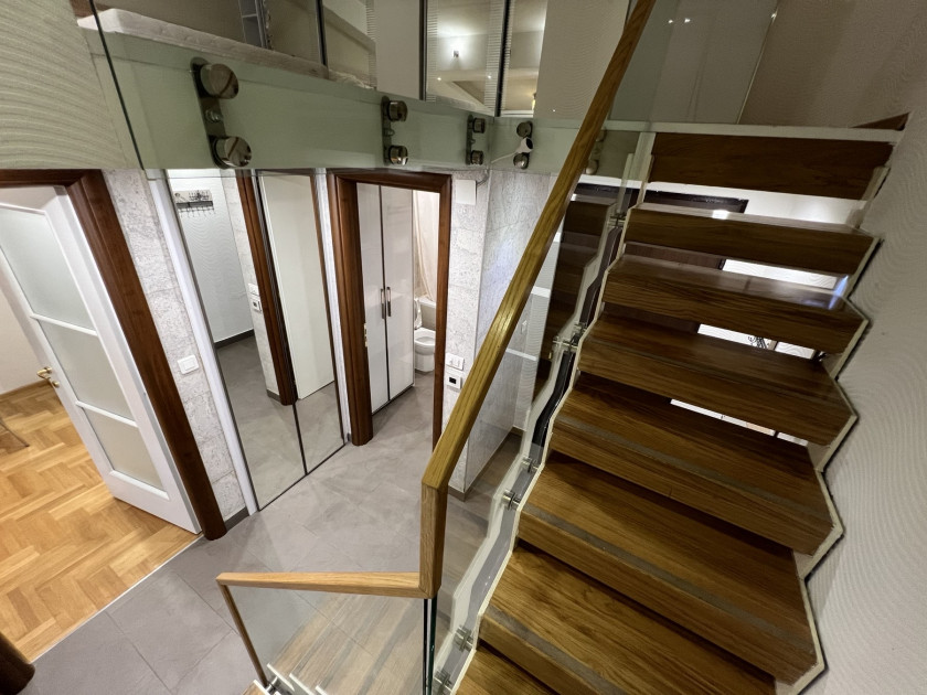 Description (Croatian): Izdaje se lijepo uređen i potpuno namješten dvosoban stan sa funkcionalnom galerijom, smješten u urednoj i održavanoj zgradi na odličnoj lokaciji.