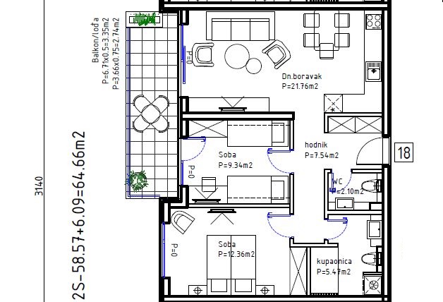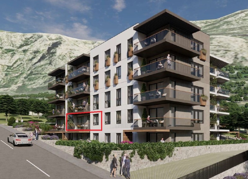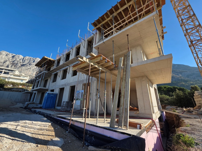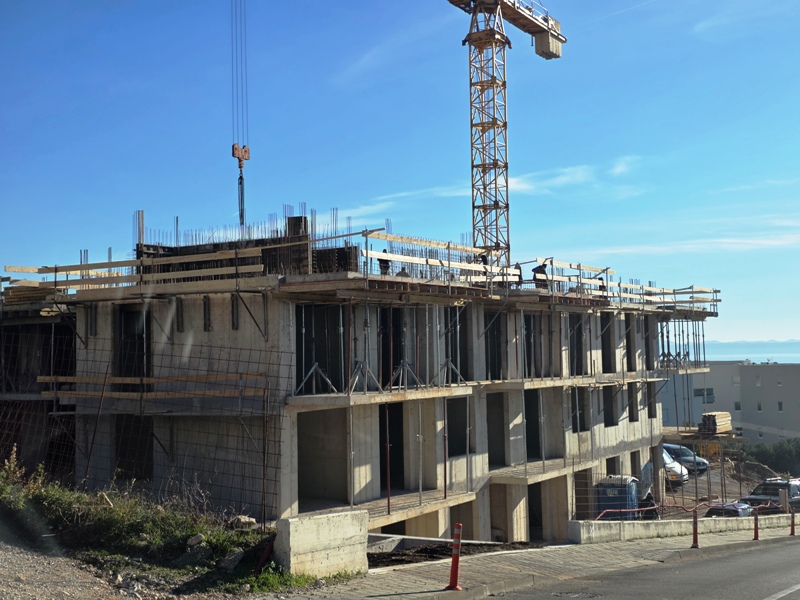 Description (Croatian): Dvosoban stan na prvom katu stambene zgrade s liftom u izgradnji. Stan je ukupne površine 65m2 i sastoji se od hodnika, dnevnog boravka s kuhinjom i blagovaonicom te izlazom na jugozapadnu lođu i balkon ukupne površine 10m2 s kojeg se pruža otvoren neometan pogled na more, dvije spavaće sobe, kupaonice i wc-a. Objekt je od mora udaljen 720m te se nalazi u blizini škole, vrtića, trgovine… U gradnji i opremanju će se koristiti vrhunski materijali i oprema ( termo fasada, ulazna blindo vrata, sobna vrata renomiranog proizvođača, trokomorni vanjski otvori, staklena ograda na balkonima, uređene kupaonice s walk in tuševima, keramika prve klase, klima uređaji… ). Stanu pripada vanjsko parkirno mjesto, cijena istog: 10.000,00 eur. Završetak gradnje se očekuje do kraja 2026. godine.