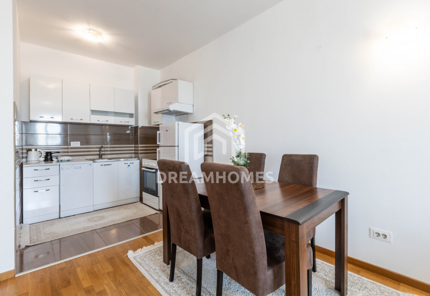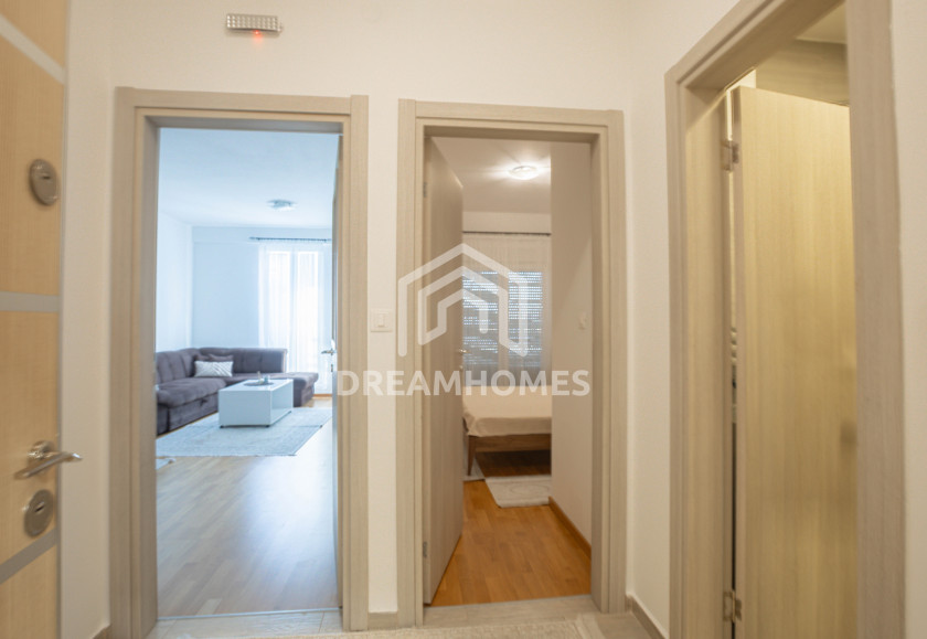 Description: A well-maintained and functional one-bedroom apartment of 50 m² is available for rent, located in the Dadi building in the Stari Aerodrom area of Podgorica, close to the Voli supermarket and cafés Hedon and Minhen. The apartment is situated on the 4th floor of a building with an elevator and is move-in ready.