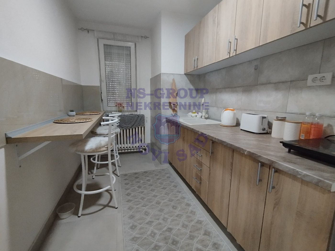 Description (Croatian): Na lokaciji poznatoj po zelenim parkovima i humanim principima gradnje, u zgradi koja je u blizini svih sadržaja neophodnih za udoban život, nalazi se ovaj jednosoban, potpuno renoviran stan. Ustanu je sve izmenjeno: elektro i vodovodne instalacije, stolarija, podovi, kupatilo. Stan ima odličan raspored prostorija i sastoji se od velike sobe, odvojene kuhinje, kupatila i hodnika. Svi podovi su urađeni u kvalitetnoj keramici, što daje ovom prostoru lep osećaj čistoće i velikog prostora. Stolarija je PVC, velikih staklenih površina, što obezbeđuje lepu osvetljenost. Kuhinja je potpuno opremljena i ima interesantno postavljen prostor za ručavanje. Kupatilo ima opremu koja bi svakoga zadivila. Kvalitetno urađeno, savršeno dizajnirano. Stan ima pripadajuću ostavu od 4m2 i uredan podrum od 14m2. Ispred zgrade je veliki prostor sa parkingom i puno zelenila. Prodaje se namešten. Ovaj stan, nudi odlične mogućnosti, kako za život, tako i za rentiranje, pa je dobar izbor za sve koji traže sigurnu i profitabilnu investiciju.