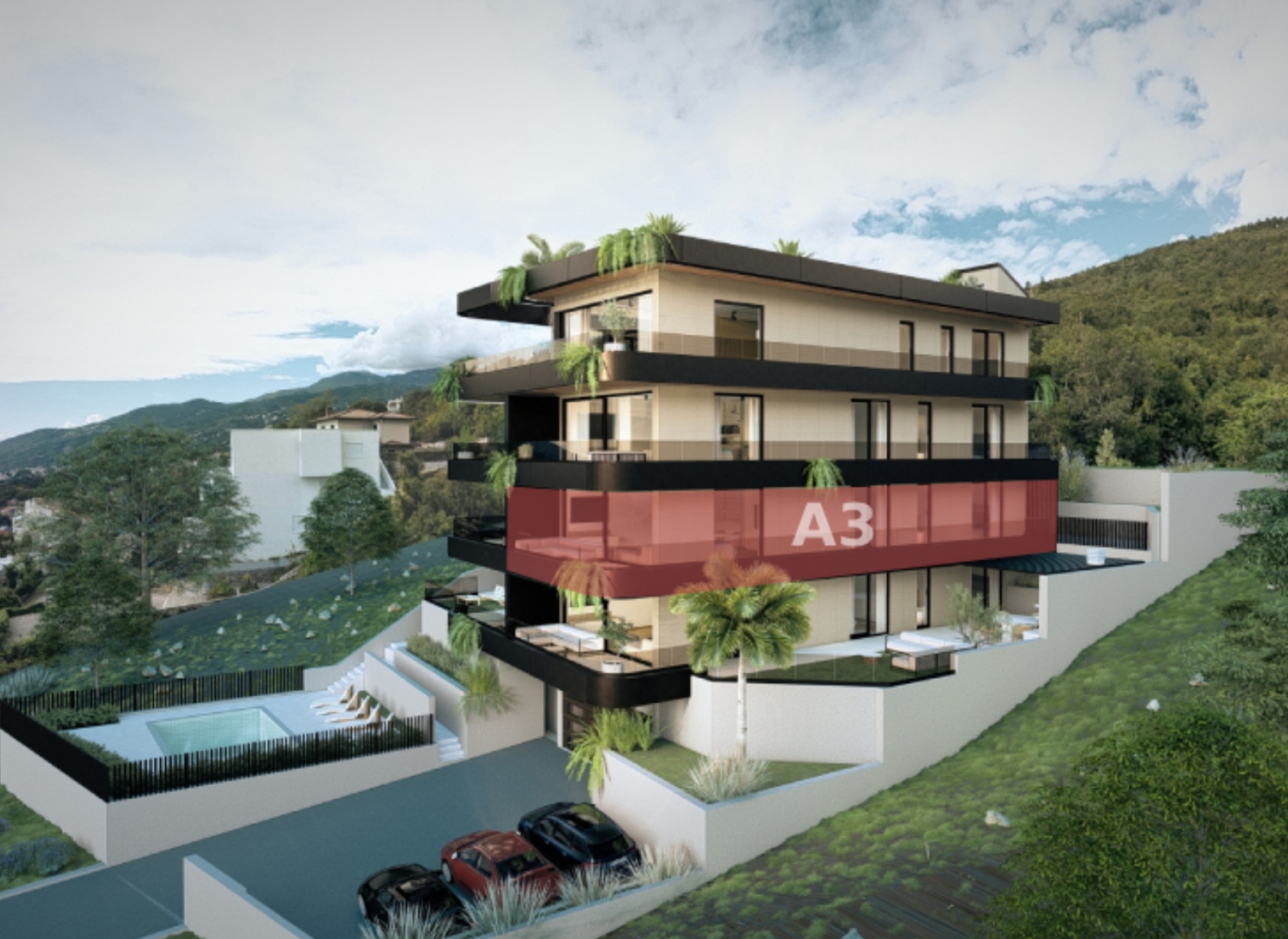 Description: OPATIJA, IČIĆI – An elegant residence with a spacious terrace and a panoramic view stretching across the entire Kvarner Bay is now available for sale. This luxurious two-bedroom apartment with a generous living area features a large terrace overlooking the sea and the ACI marina, set within an exclusive residential complex equipped with a shared swimming pool and an underground garage, all in a peaceful and highly desirable location just steps from the coast.The sophisticated development comprises seven high-end apartments that combine contemporary architecture, refined elegance and premium materials, ensuring durability and exceptional quality. The setting offers complete privacy and tranquillity while keeping you only a few minutes’ walk from beaches, the marina and all the amenities of the Opatija Riviera.Apartment A3 is located on the first floor and includes two bedrooms, two bathrooms and a total net area of 120.11 m² (including coefficients). The interior spans 98....