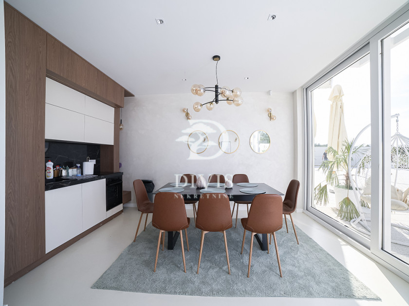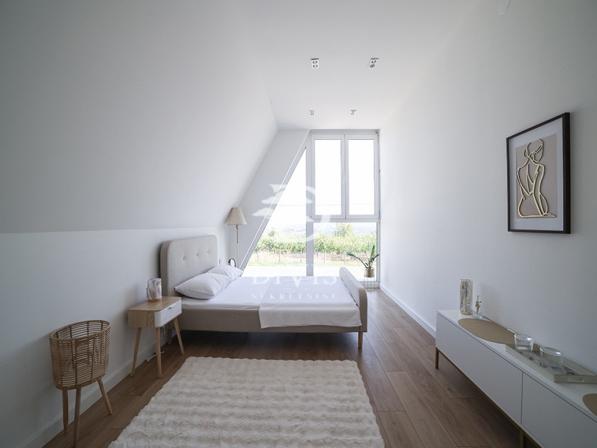 Kuća je izgrađena početkom 2025. godine, sa pažljivo biranim savremenim materijalima i arhitekturom koja kombinuje funkcionalnost i estetiku: aluminijumska stolarija (najsavremeniji profili), bronza-reflektujuća stakla, vrhunska termo i zvučna izolacija, skrivena „integra“ sobna vrata, kvalitetni podovi, sistem grejanja na toplotne pumpe, video nadzor, interfon, kapije na daljinsko upravljanje.