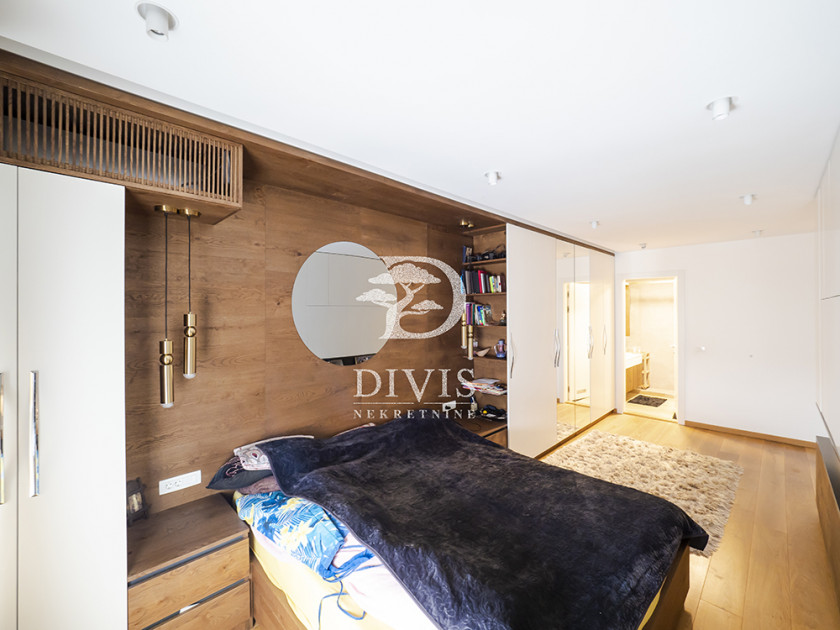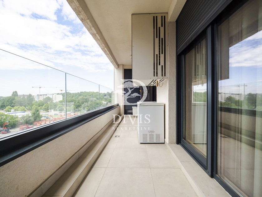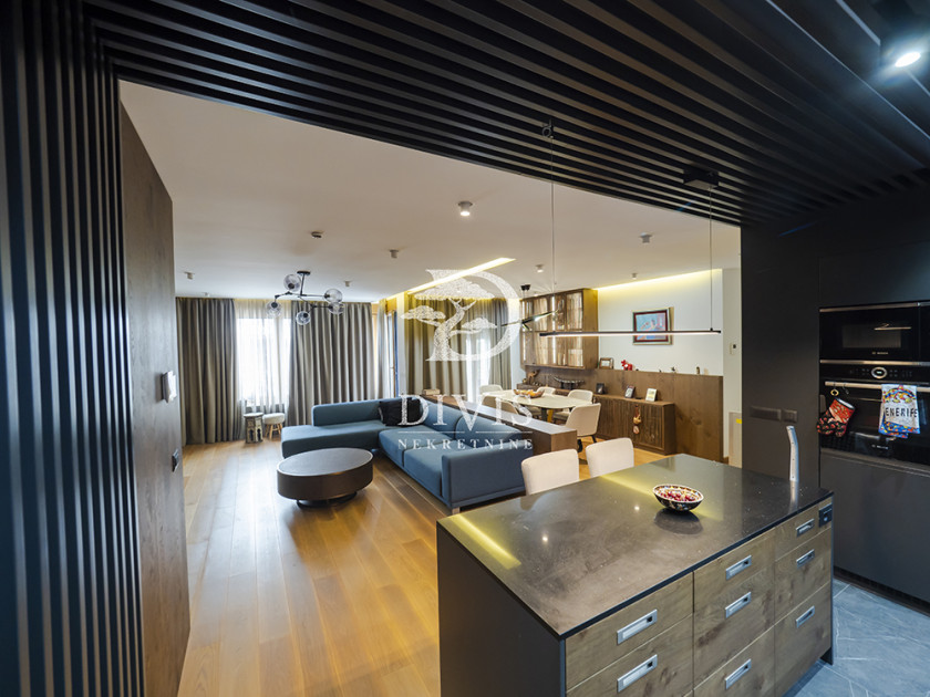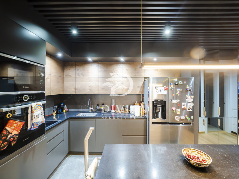 Stan je prostran, svetao i građen od najkvalitetnijih materijala: aluminijumsko-drvena stolarija sa električnim roletnama, Bosal sigurnosna vrata, granitna keramika, hrastov parket prve klase, Smart Home tehnologija, Fujitsu rashladni sistemi u svim prostorijama, centralno grejanje sa kalorimetrom po utrošku i Ariston pametni bojler.