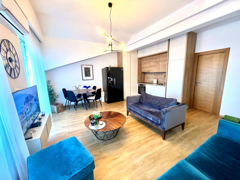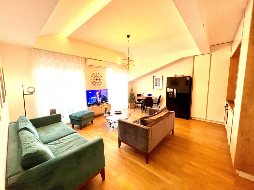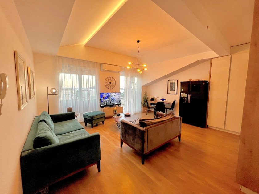 Opis: Na prodaju atraktivan stan u centru Budve, lociran na samo 500 metara od obale. Objekat je noviji i jako kvalitetno građen i po tome se odvaja od drugih u okruženju. Stan se nalazi na posljednjem spratu i ima svoju privatnost. Zgrada posjeduje lift i video nadzor, što omogućava sigurnost i udobnost stanovanja. Ukupna površina stana iznosi 85 m². Stan je moderno opremljen, pruža visoki komfor i funkcionalnost, dok mu izuzetna lokacija omogućava blizinu svih ključnih sadržaja – plaža, restorana, prodavnica i kafića.