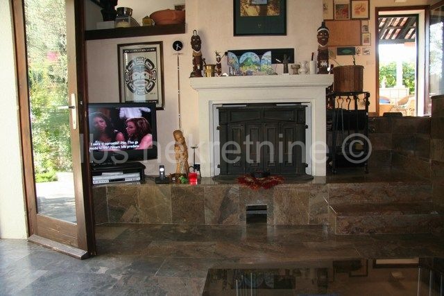 Stambeni prostor je kvalitetno i bogato opremljen, posebno dnevni dio s kaminom i kožnim kaučima. Igra prostora na nekoliko razina ovaj dio kuće čini posebno šarmantnim.