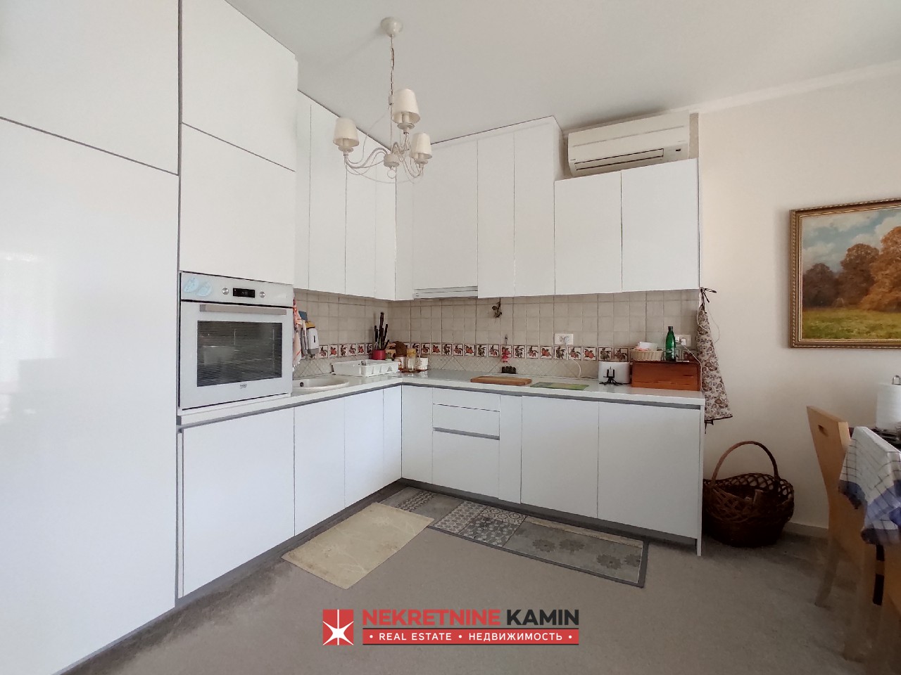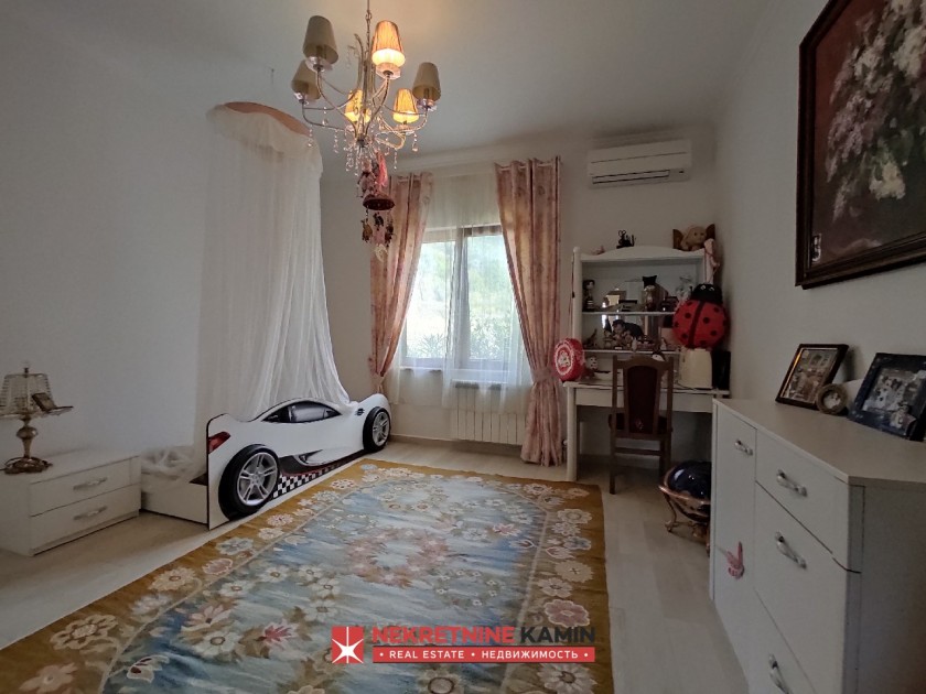 Kuća je kompletno namještena i opremljena potrebnim aparatima. U dizajnu kuće korišćeni su visokokvalitetni savremeni materijali.