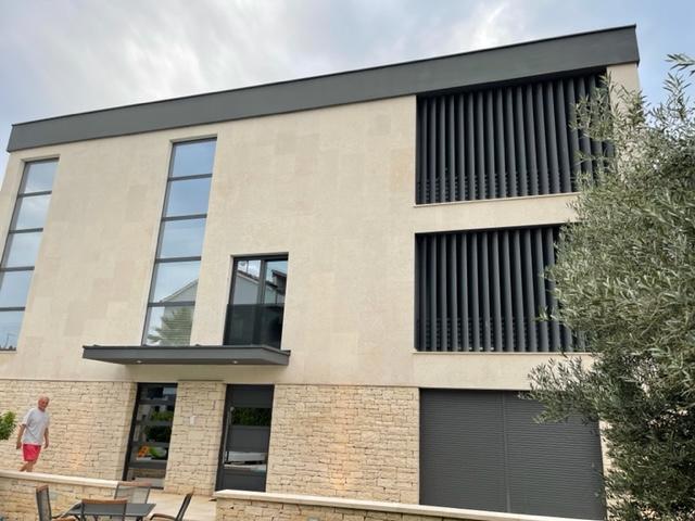 Opis (Engleski): Impressive newly built luxury villa in Vodnjan area!Villa is located cca. 1,5-2 km from the sea and benefits sea views!Total area is 394 sq.m. Land plot is 1060 sq.m.Villa offers hallway, four bedrooms with bathrooms en-suite, salon with modern kitchen, terrace, sauna.On the territory there is a swimming pool, decorated garden with olive trees.The pearl of the property is outdoor dining area with BBQ zone.Parking is arranged for several cars. From Shore (m): 1500. Ref: RE-AB-VODNJAN