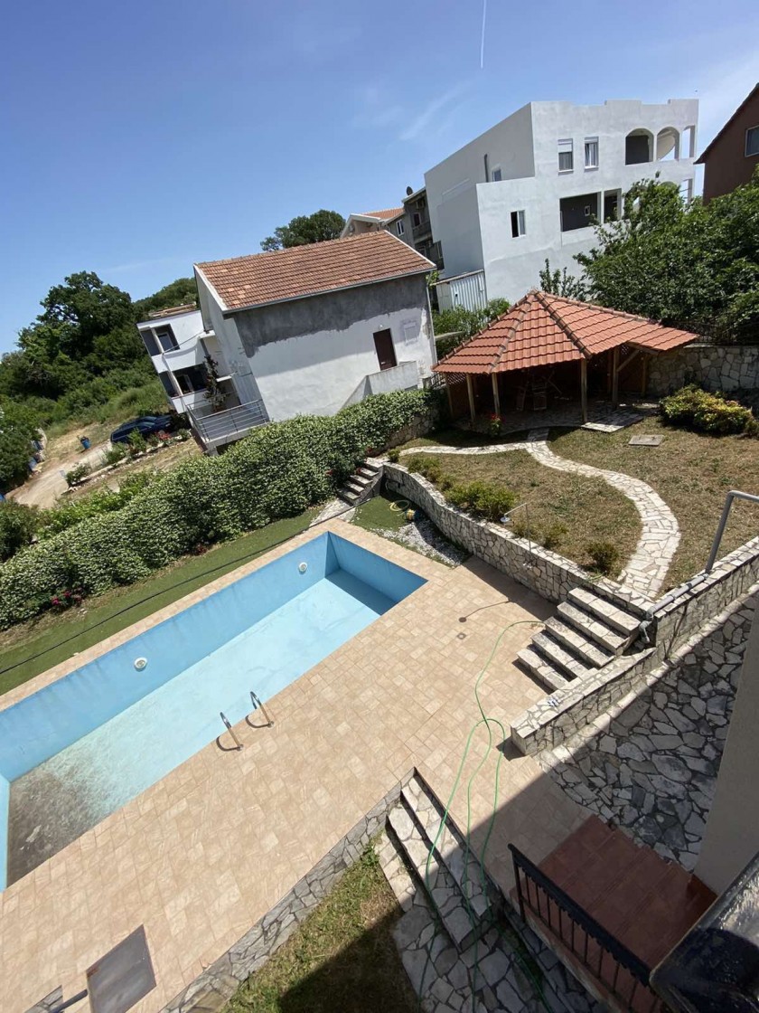 Opis: Prodaje se vila sa bazenom koja se nalazi u Dobre vode - Bar, 200 m iznad magistrale i na 800m udaljenosti od plaže Veliki pijesak. Sagrađena je po najvišim standardima, opremljena kvalitetnim namještajem i bijelom tehnikom. Terase su veoma prostrane sa pogledom na more.Sastoji se od : prizemlja koje čine veoma prostrana dnevna soba sa kuhinjom i trpezarijom, spavaca soba i kupatilo, unutrasnje stepenište za na sprat.