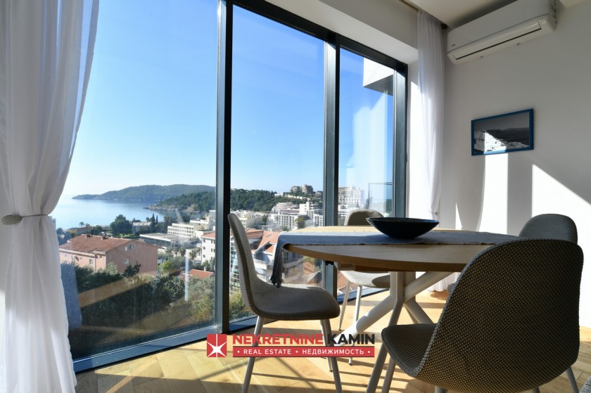 Trosoban stan luksuzno opremljen sa pogledom na more u Bečićima.
