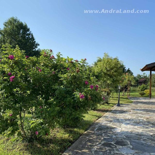 Ispred kuće nalazi se trem gde možete užinati tokom cijele godine, a od proleća do kasne jeseni uživati u prelepoj bašti koja se prostire na 30 ari. Bočno se nalazi parking za 2-3 auta.