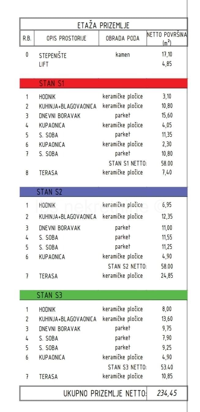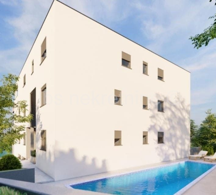 Zgrada posjeduje lift i bazen svim stanarima na korištenje.Pripada mu jedno parkirno mjesto i garaža.