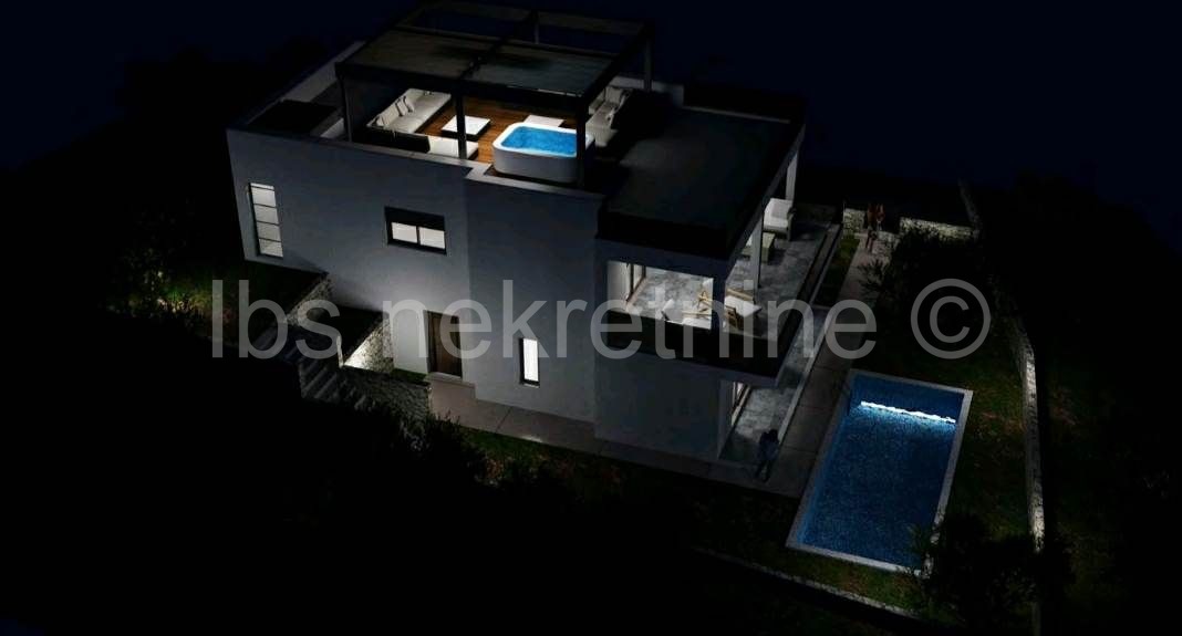 Vila neto površine od 295, 42 m2 nalazi se na zemljištu od 474 m2 zbog svog položaja na padini, vila nudi spektakularan i nesmetan pogled na more.