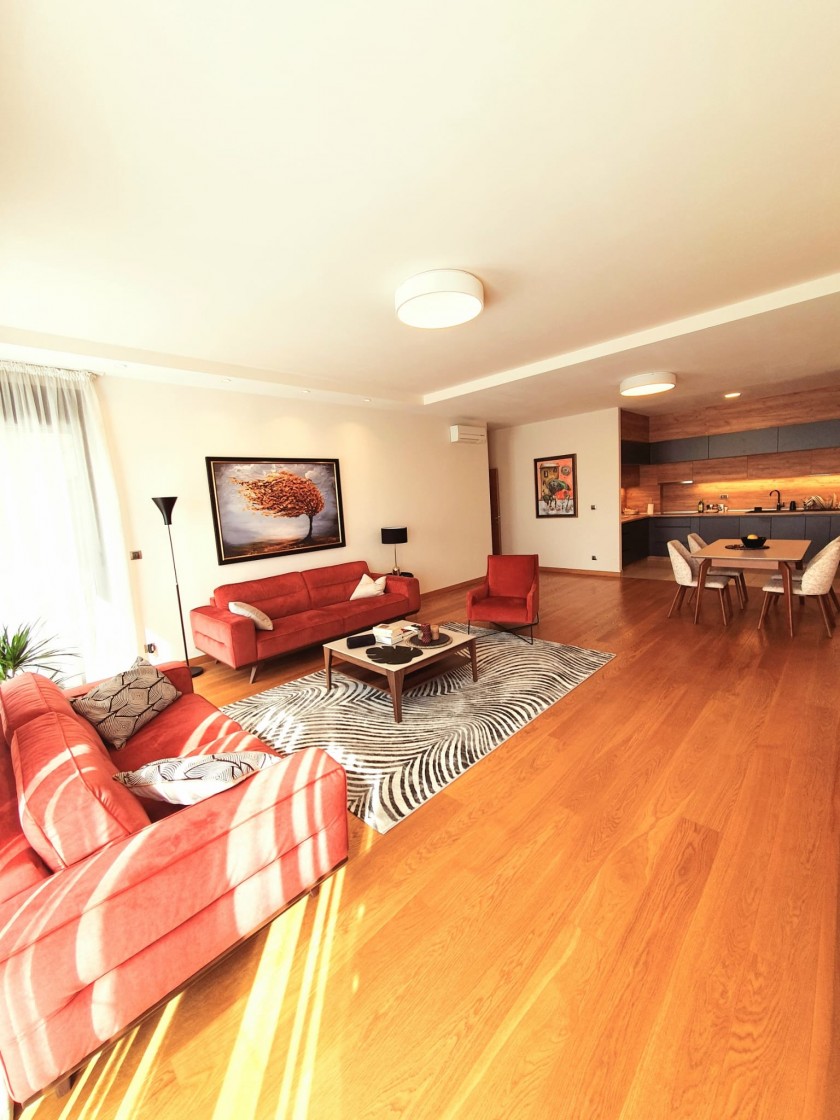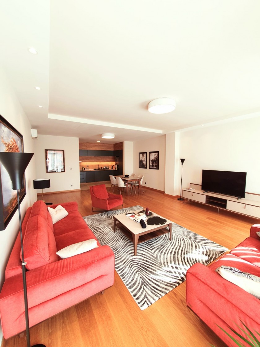 Opis: Izdaje se luksuzan, prostran stan sa dvije spavaće sobe, kod Atlas Capital Centra, u Ankarskom bulevaru.