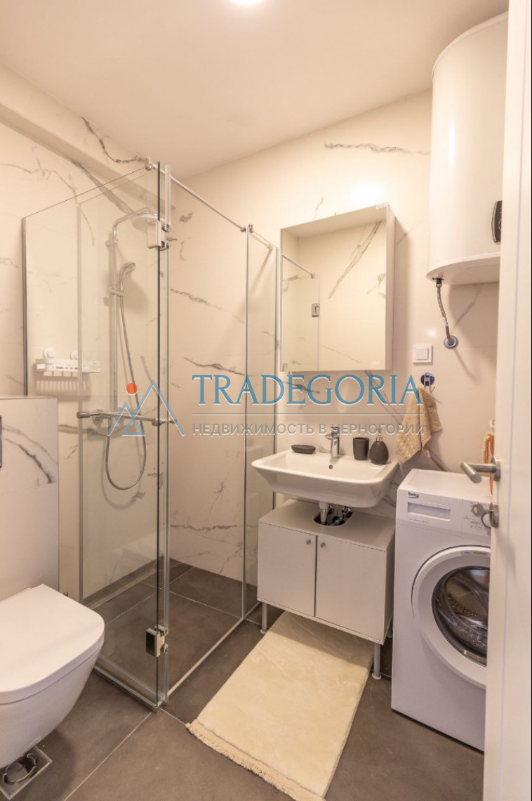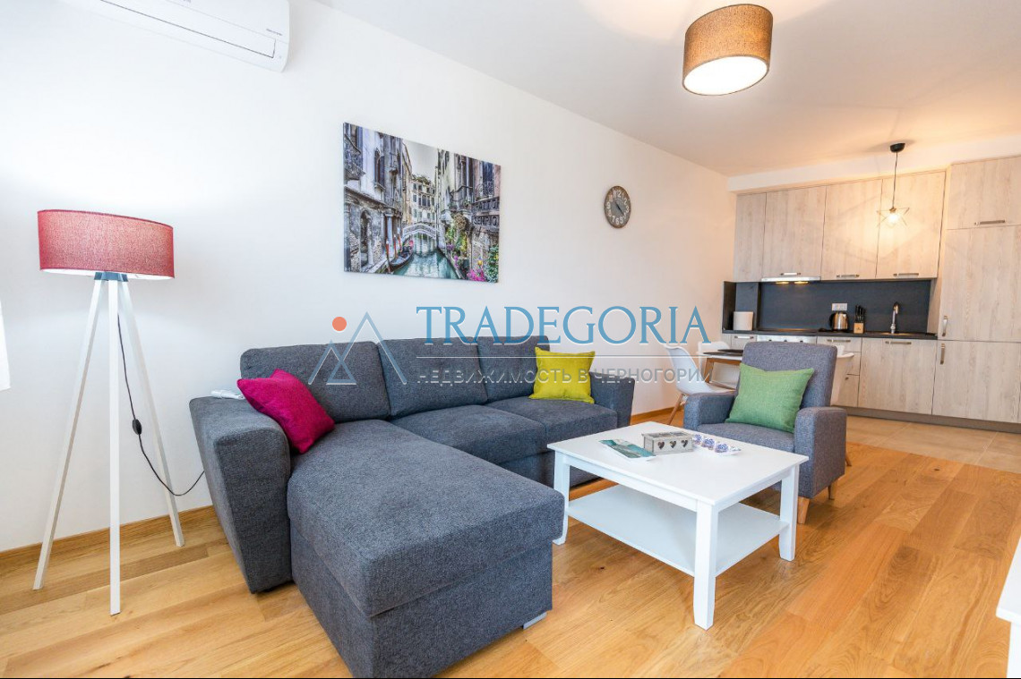 Opis: OpisJednosoban stan u Bečićima. Površina - 45m2 Prvi sprat, novogradnja, lift Potpuno namešten. Pogled na more.