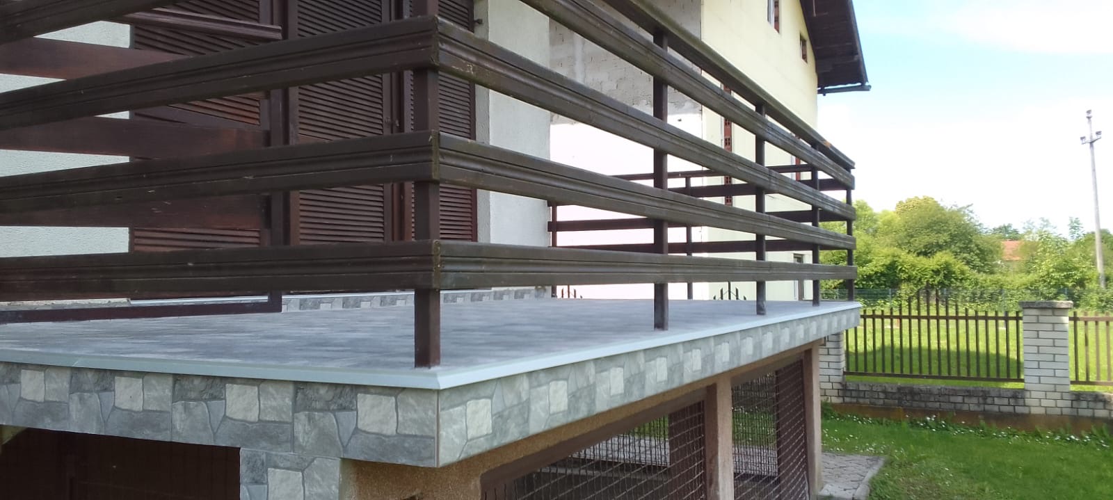 •2 spavace sobe na svakom spratu (po jedna spavaca soba izlazi na veliku ogradjenu terasu)