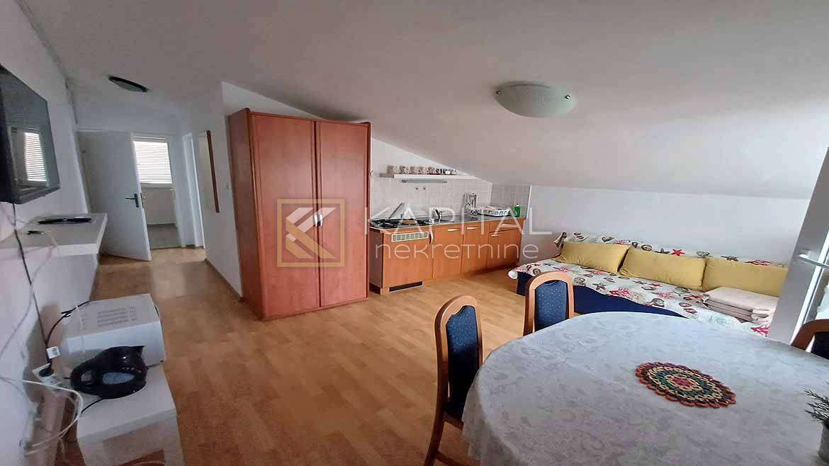 Opis: SAMO KOD NAS!!! U prodaju dobiven ugodan apartman od 40 m2. Sastoji se od kuhinje i dnevnog dijela, te dvije spavače sobe i kupaone, te lođe s koje se pruža djelomičan pogled na more. Udaljenost do plaže i šetnice s restoranima je oko 100 m. Za sve informacije nazovite +385 99/2196-354