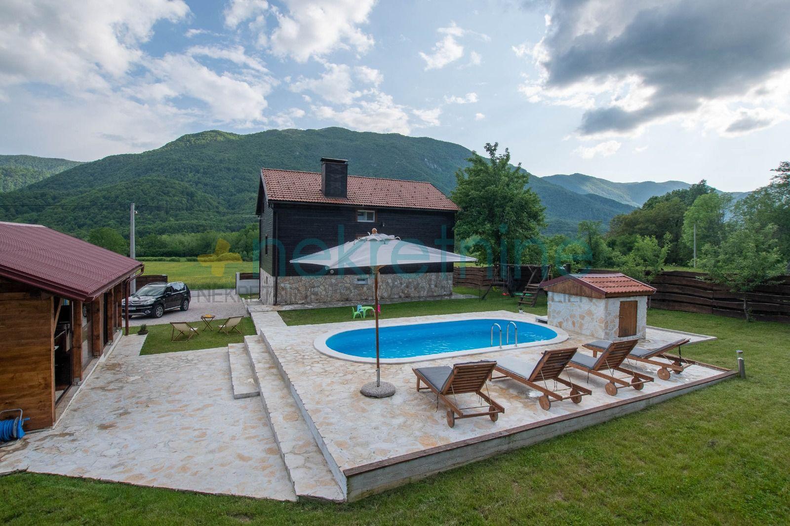 Opis: Prodaje se prekrasna kuća za odmor u Lici, predio Rizvanuša-Brušane, kuća je površine 218 m2, na zemljištu površinee 5000 m2.