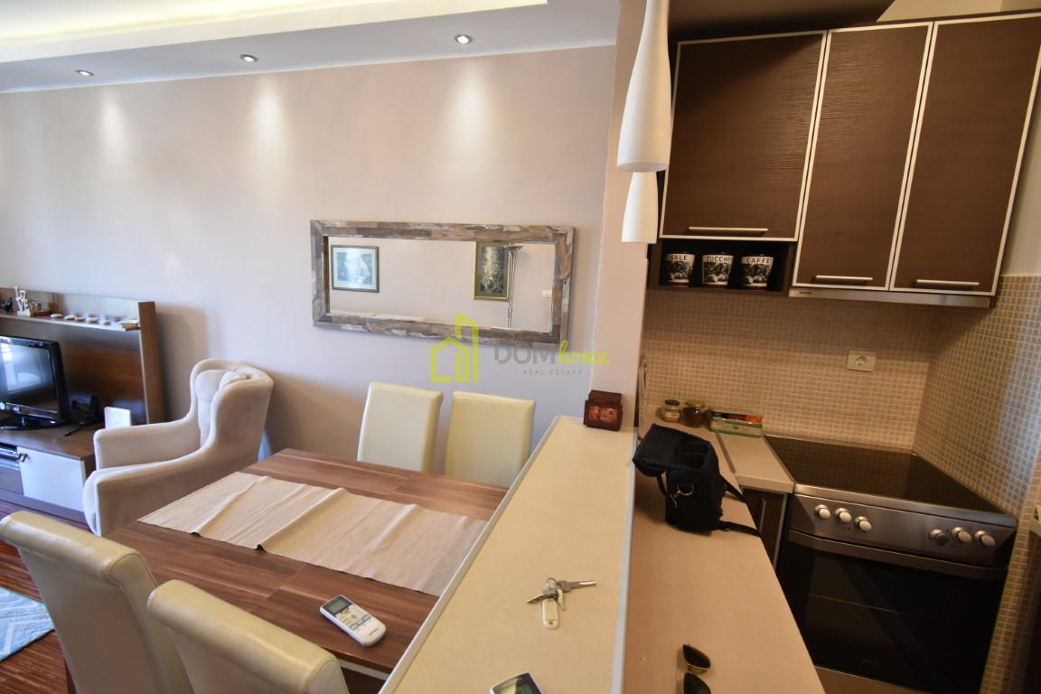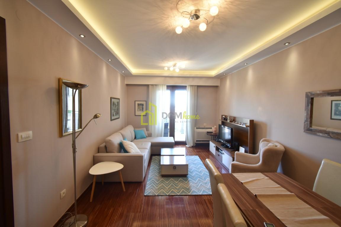 Struktura stana: Ulazni hodnik, dnevni boravak, kuhinja, trpezarija, dvije spavaće sobe, kupatilo, toalet i terasa.