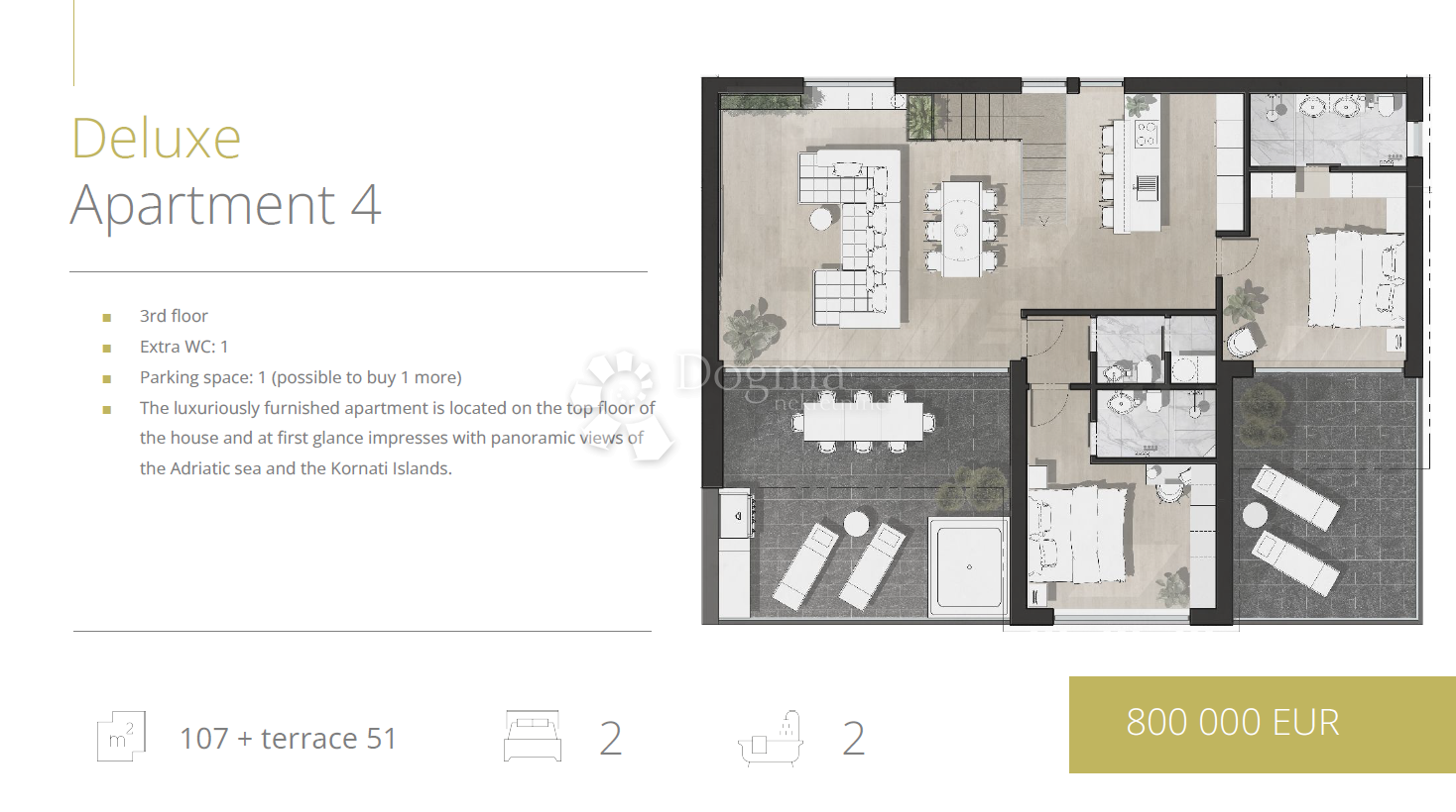 Na ovom prekrasnom mjestu na samoj plaži, u prvom redu, nalazi se ovaj projekt koji se sastoji od četiri izuzetno luksuzna apartmana, na odličnoj poziciji i sa prekrasnim pogledom.