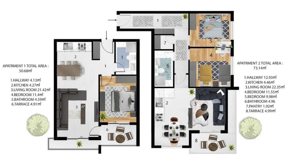 Povrsina stanova je: Stanovi Jednosobni - 50.68m2