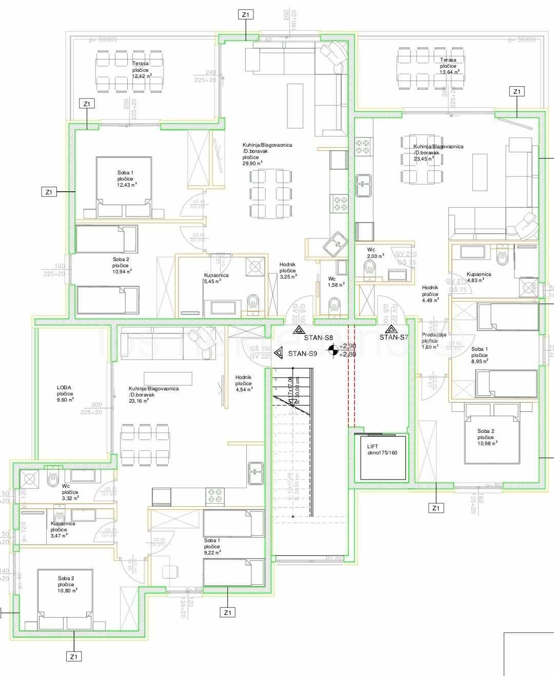 Zgrada će imati ukupno 11 stanova na četiri etaže: suteren, prizemlje, prvi kat i drugi kat. Devet stanova će imati dvije spavaće sobe, a dva tri spavaće sobe. Površina stanova se kreće od 59 m2 - 131 m2