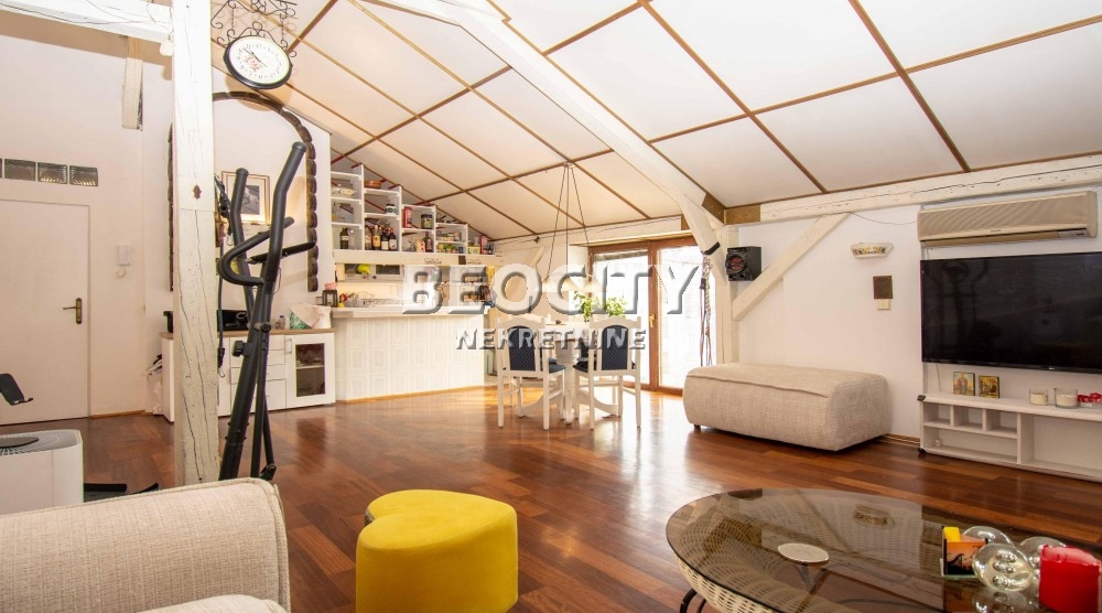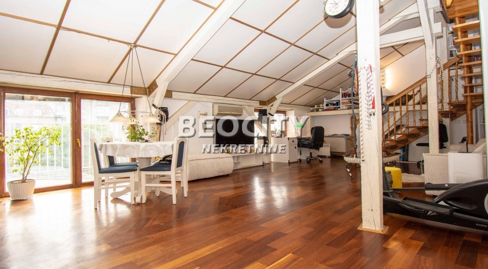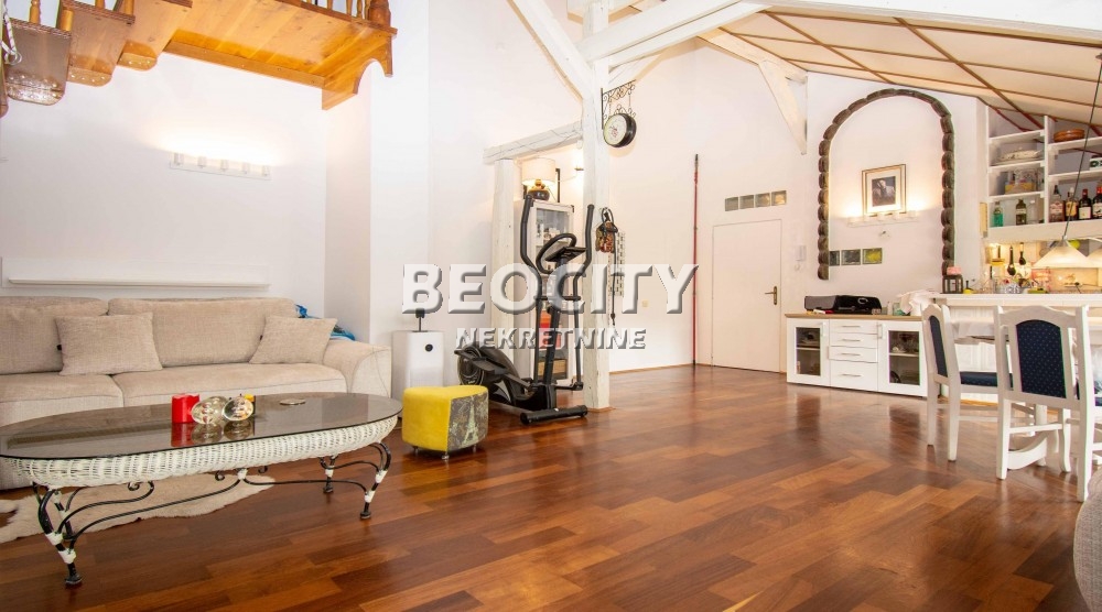 Stan je dvostrano orjentisan, suncan . Ukupna povrsina je 110 kvadrata, plus 15 m2 terase. U zgradi postoji mogucnost ugradnje lifta, s tim da se ne narusi mermerni ulaz i stepeniste. Visina plafona u dnevnom boravku je do sest metara. Pod je od autenticnog africkog drveta, a ukras je i drveno stepeniste. Više informacija na: www.beocitynekretnine.rs Agencijska provizija 2%. Telefoni: 060/328-3901 • 060/555-9720 • 011/328-3901. Kontakt van radnog vremena: kancelarija@beocitynekretnine.rs