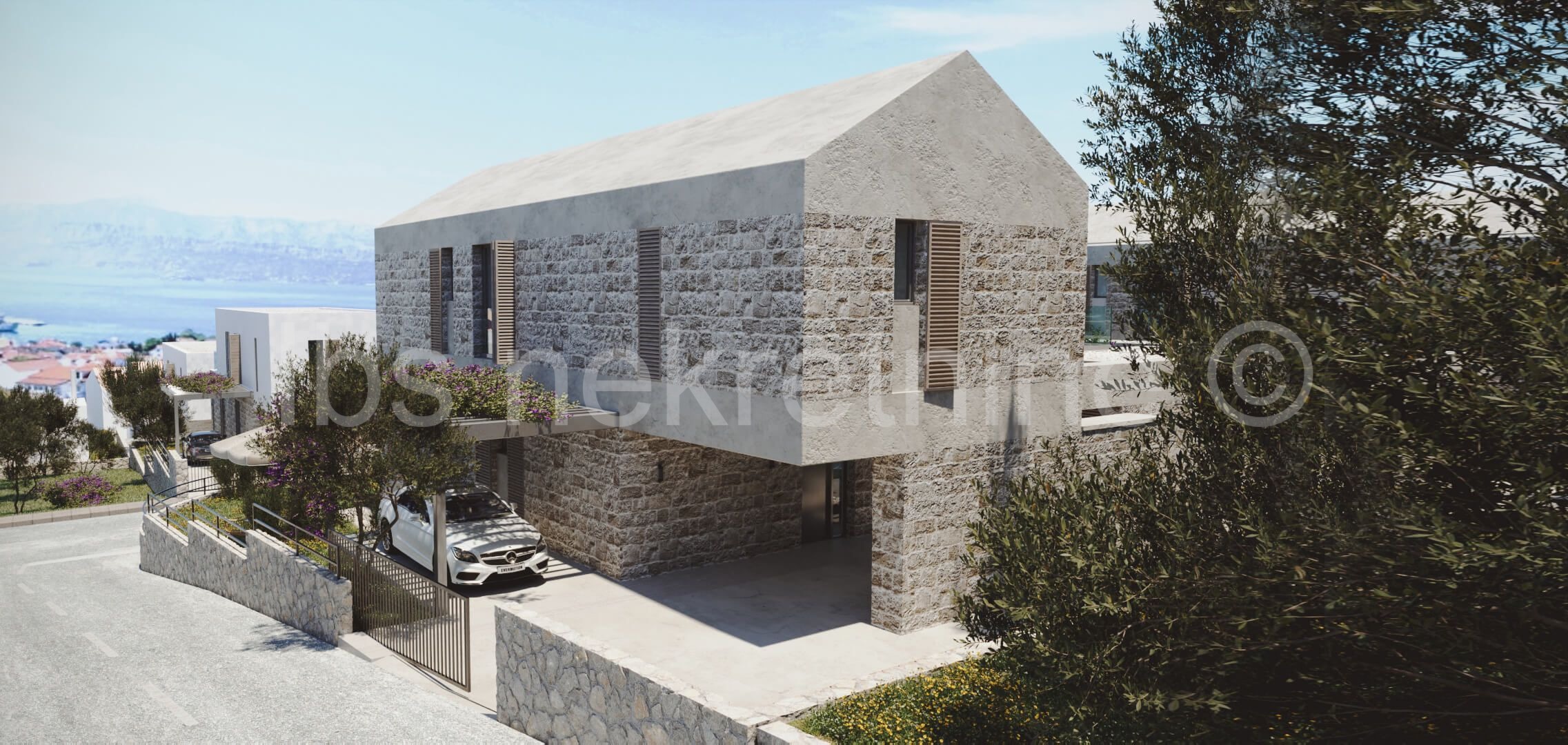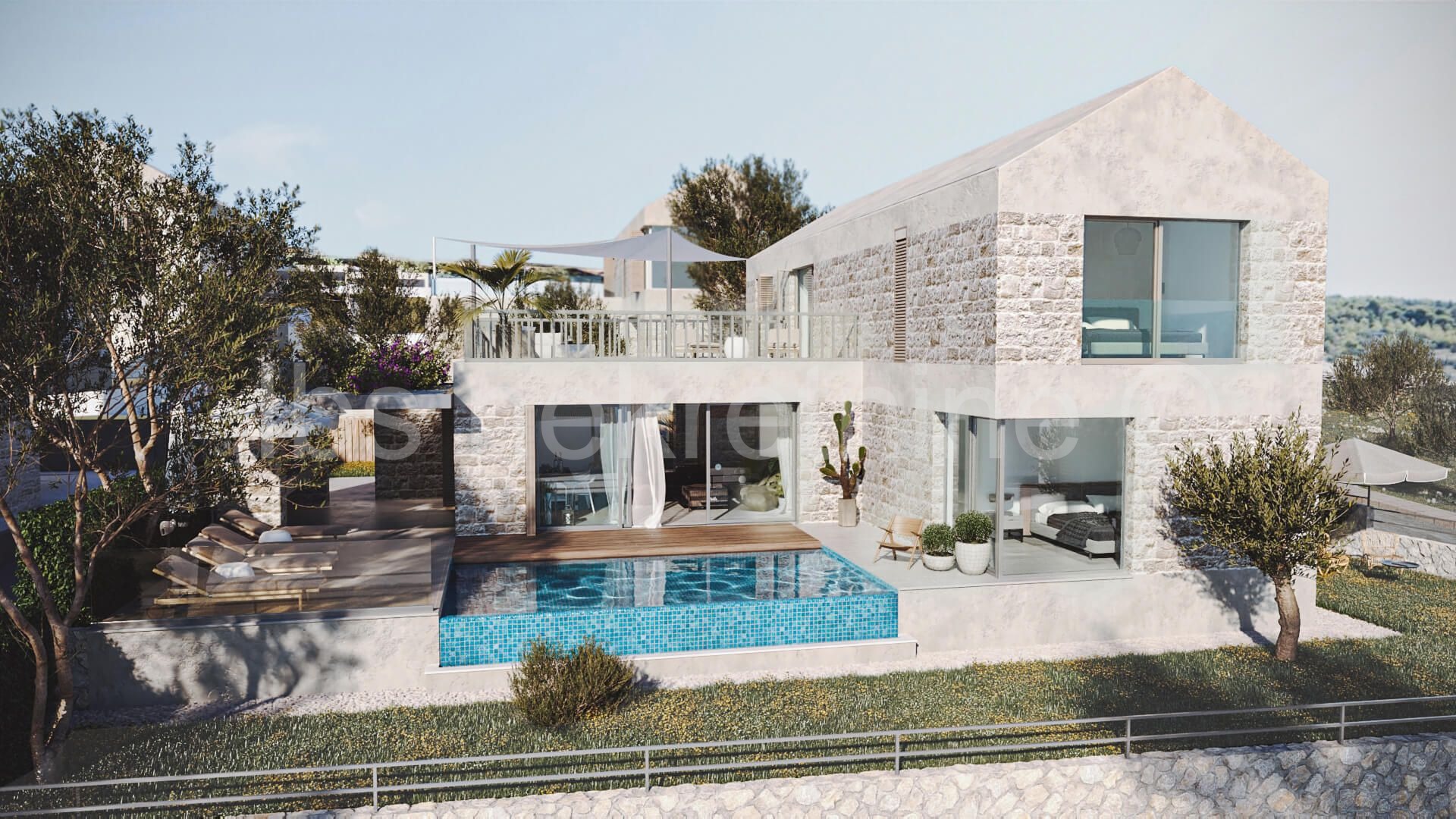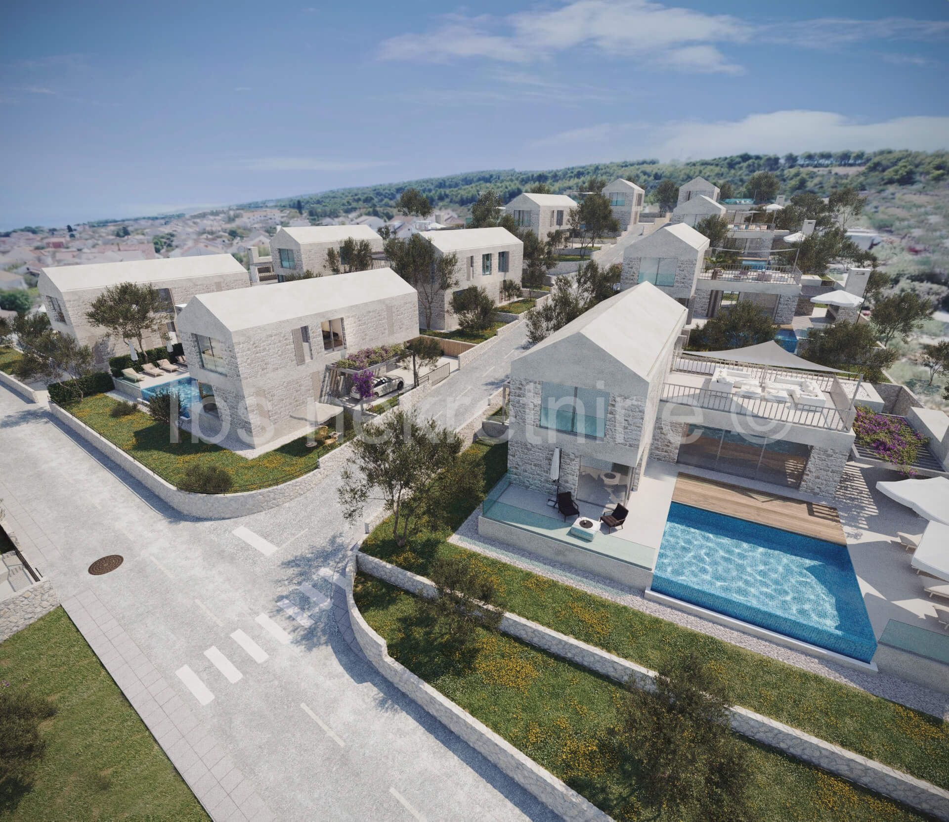 Slikovito smještene rezidencije s visine gledaju na tirkizno Jadransko more. Pažljivo odabrana lokacija pruža jedinstvenu kombinaciju mira i opuštanja od gradske vreve nedaleko od samog centra mjesta. Koncept stvoren za ljude koji cijene mir i funkcionalnost u nježnom mediteranskom okruženju. Vile kombiniraju moderne trendove s lokalnim mediteranskim stilom što ih čini posebnima, a ujedno omogućuje da se uklope u okolinu. Vila tradicionalnog stila je klasična i bezvremenska s trunkom modernosti, izrađena od pažljivo promišljenih materijala. Stoljetna povijest otoka prikazuje se kroz kamene detalje koji prekrivaju fasadu. Kvadratura od 230 m2 brutto.