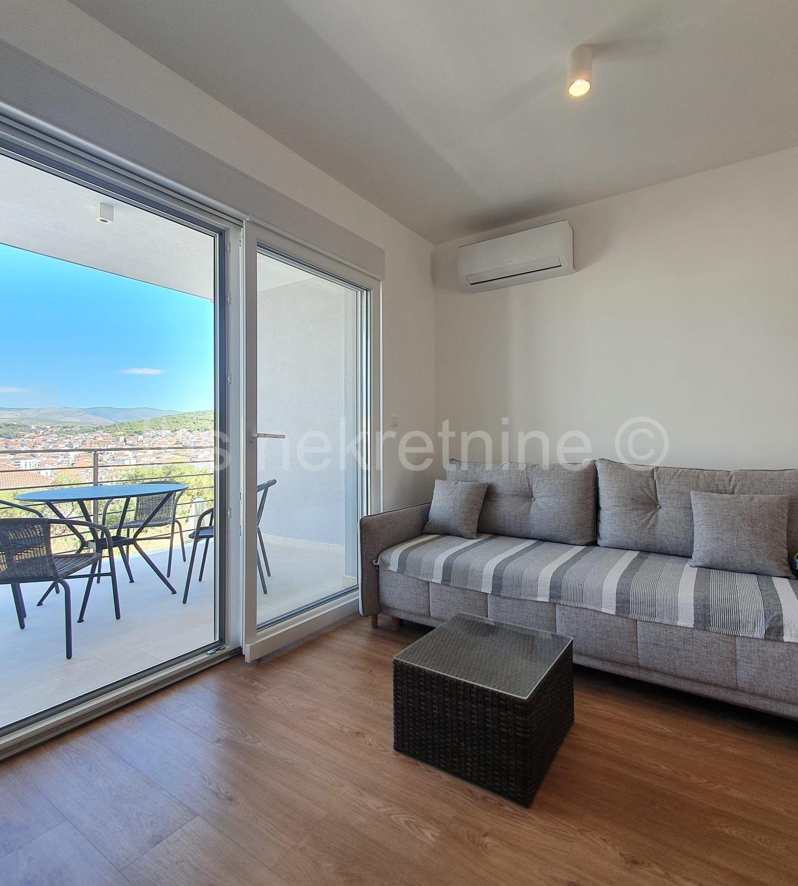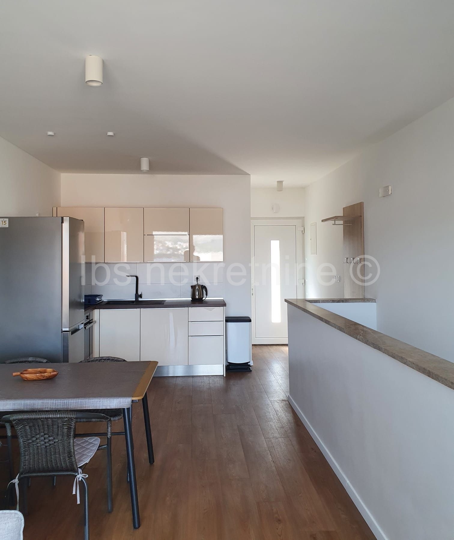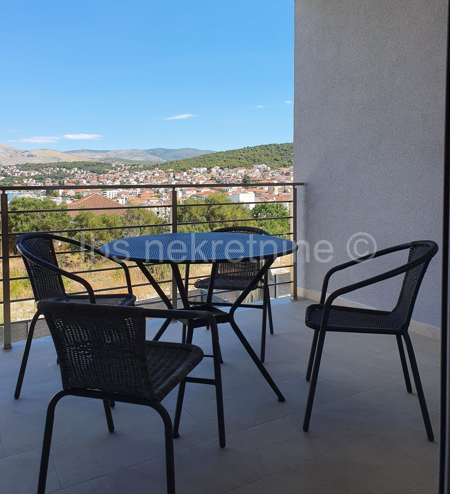 Opis: Posredujemo pri prodaji namještenog dvoetažnog stana na Čiovu u Okrug Gornji. Stan se nalazi u manjoj stambenoj zgradi s ukupno četiri stana. Ukupna površina stana je 75m2 podijeljena na dvije etaže koje su povezane unutarnjim stepenicama. Stan ima svoj ulaz koji je u razini parkirališta. Prizemlje se sastoji od kuhinje, dnevnog boravka s blagovaonicom,hodnika, kupatila i balkona. Drugi tj spavaći dio stana se nalazi u polusuterenu i sastoji se od hodnika, dvije spavaće sobe, kupatila i dva balkona. Svakom stanu pripada jedno nenatkriveno parkirno mjesto. Zgradi pripada i jedan bazen koji je na korištenje svim stanarima zgrade. Centar mjesta s svim potrebnim sadržajima je udaljen 200m kao i sama gradska plaža. Udaljenost do Trogira je oko 5km, Aerodrom 8km. Susjedstvo je mirno i idealno za odmor.