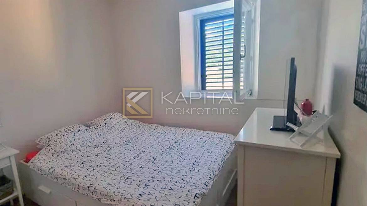 Opis: Prodajemo ukusno uređeni stan u dvojnoj kući s dva stana. Sastoji se od 3 spavaće sobe, prostranog dnevnog boravka s blagovaonom i kuhinjom, kupaonom s wc-om, wc, terasama, roštiljem i dva spremišta. Parking je pred kućom unutar dvora.