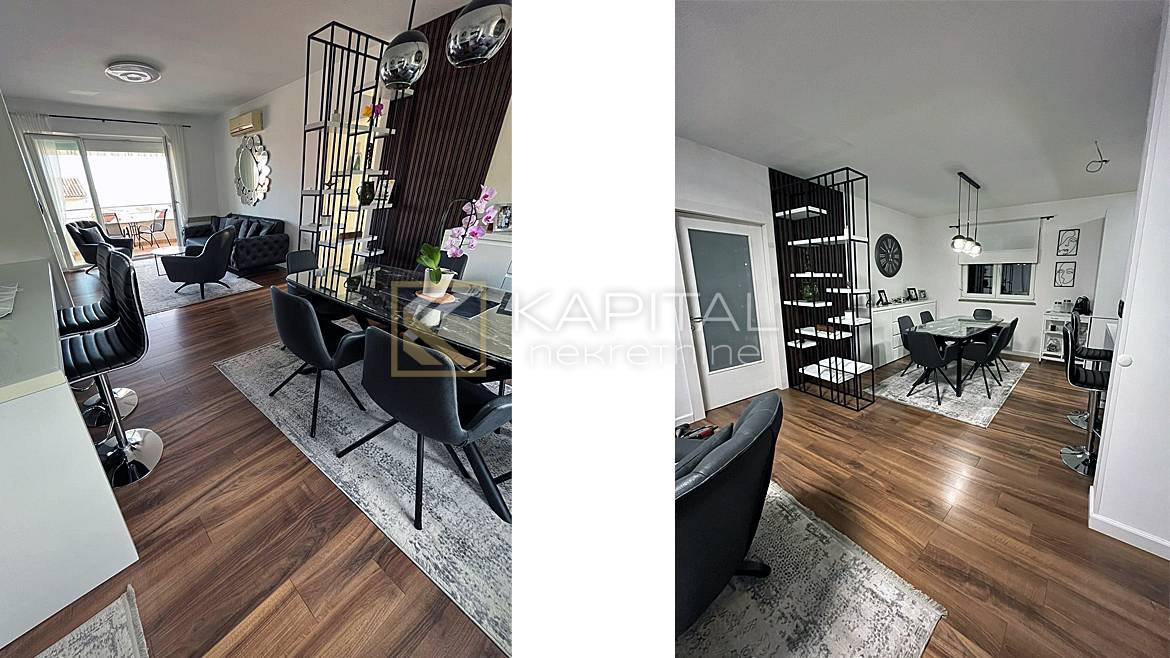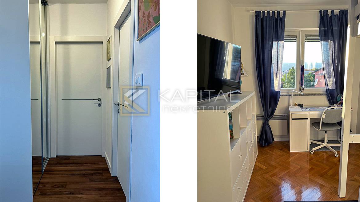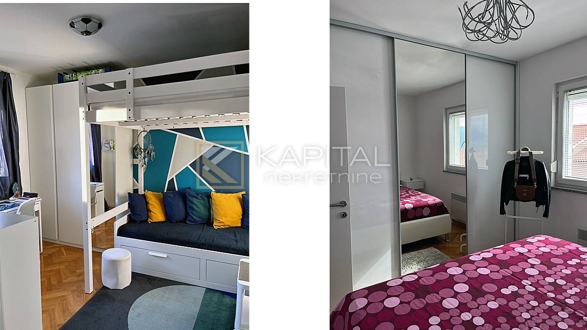 Opis: Prodaje se moderan stan s pogledom na more. Stan se sastoji od dnevnog boravka, kuhinje/blagavaone, kupaone i zasebnog WC-a, tri spavaće sobe, balkona ukupne površine 91 m2, te drvarnice od 6 m2. Stan se prodaje kompletno namješten. Pripadaju mu i dva parkirna mjesta ispred zgrade. Grijanje je riješeno radijatorima na struju i klimom, te ima i optički internet. Vlasništvo je uredno i bez tereta! Za sve informacije nazovite +385 99/2196-354