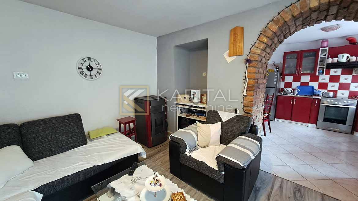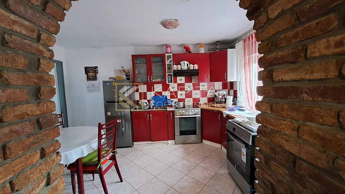Opis: Starina dvojna, S+P+1. Kuća se sastoji od dvije stambene jedinice. U suterenu je garaža, kotlovnica i 2 konobe. U prizemlju db, kuh i 2 sobe, kupaona a na katu 2 sobe i hodnik. Među konstrukcija grede, stepenište unutrašnje. Novi je krov na kući i centralno na naftu. Kuća ima dvije velike terase od 20 m2 i balkončić od 2 m2. Kući pripada 160 m2 okućnice. Idealno za obitelj s djecom koji vole mirno okruženje i puno zelenila. Ispred se nalazi parkiralište. Dvoetažni stan je adaptiran dok je druga stambena jedinica za adaptaciju. Za sve informacije nazovite +385 99/2196-354
