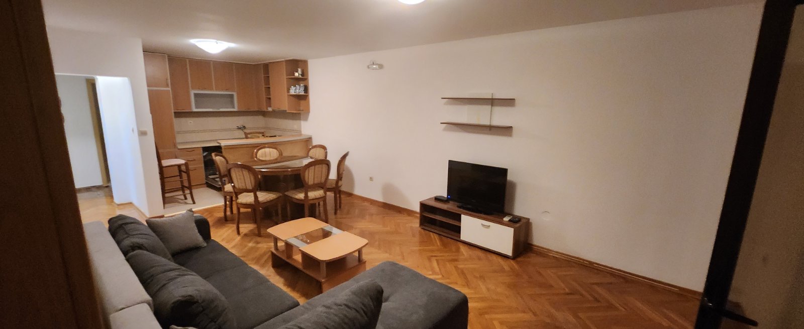 Stan se sastoji od dnevnog boravka sa kuhinjom i trpezarijom, tri spavaće sobe, kupatila, toaleta i balkona.