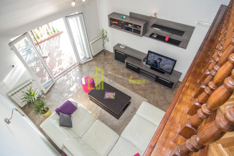 Kuća ma 250m2 (suteren, prizemlje, sprat) i kompletno je sređena i namještena.