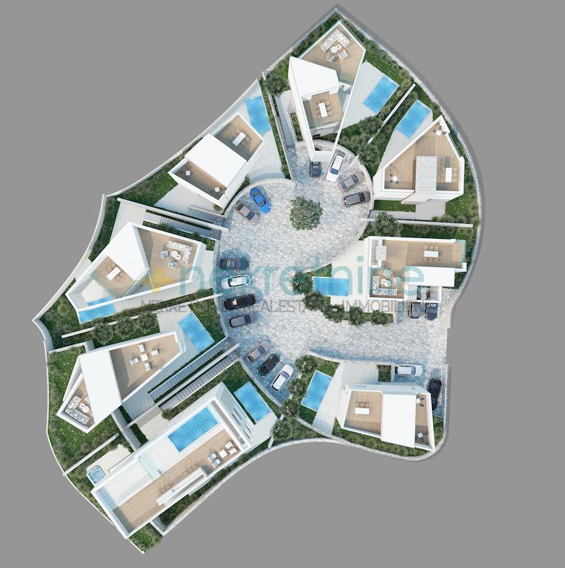 novo je stambeno naselje zatvorenog tipa koje se sastoji od 7 obiteljskih kuća i 1 stambene zgrade sa 2 stana.