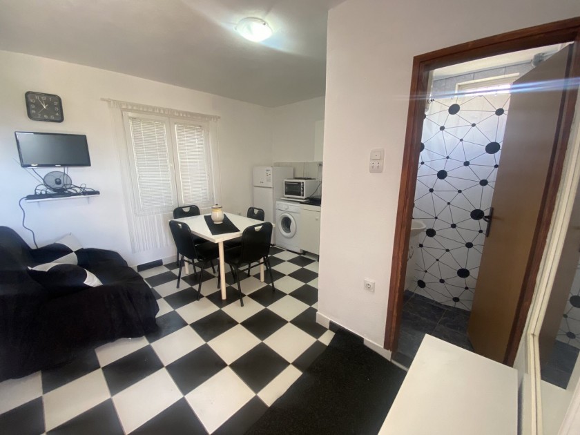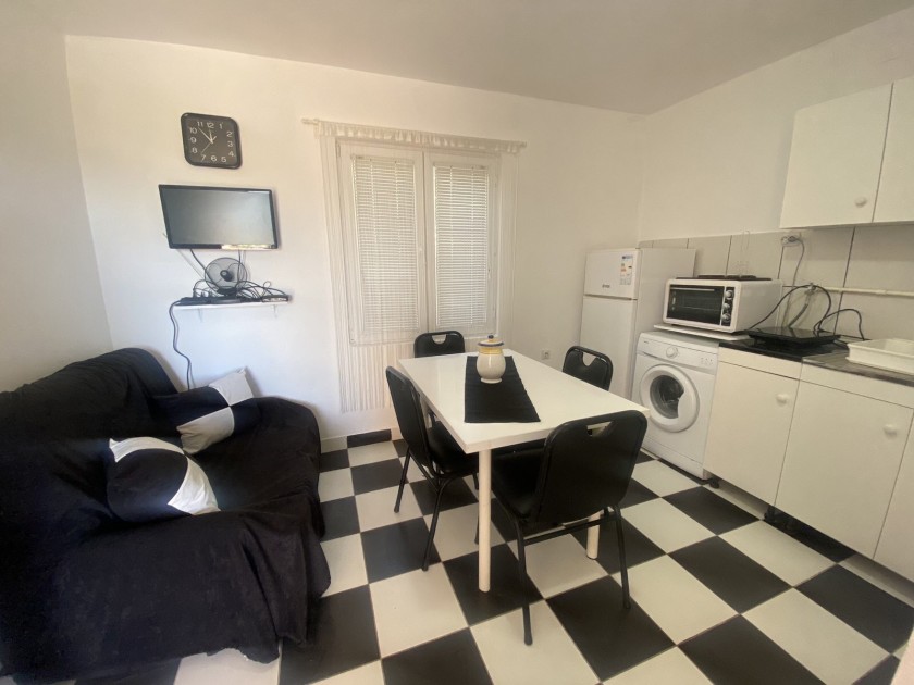 На первом этаже находится гостиная с кухней, две спальные комнаты и вторая кухня на террасе. Жилье оптимально разместит от 2 до 4 человек. Вы сможете насладиться прекрасным садом с видом на море и парковкой на две машины. До пляжа всего 1.2 км. Вода и интернет доступны круглосуточно.