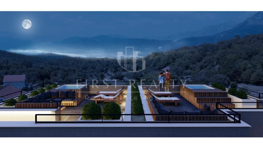Objekat se nalazi na mirnom, prijatnom mestu udaljenom od gradske vreve. Uvek ćete imati čist i svež vazduh, u pratnji zelene šume i polja lavande. Sa drugog i trećeg sprata fasade se pruža pogled na Tivatski zaliv i Lovćen, a iznutra se pruža prekrasan pogled na planine. Jedinstvenost nekretnine u svojoj lokaciji i pogodna infrastruktura omogućavaju uživanje u zoni udobnosti bez bučnih suseda i buke automobila.