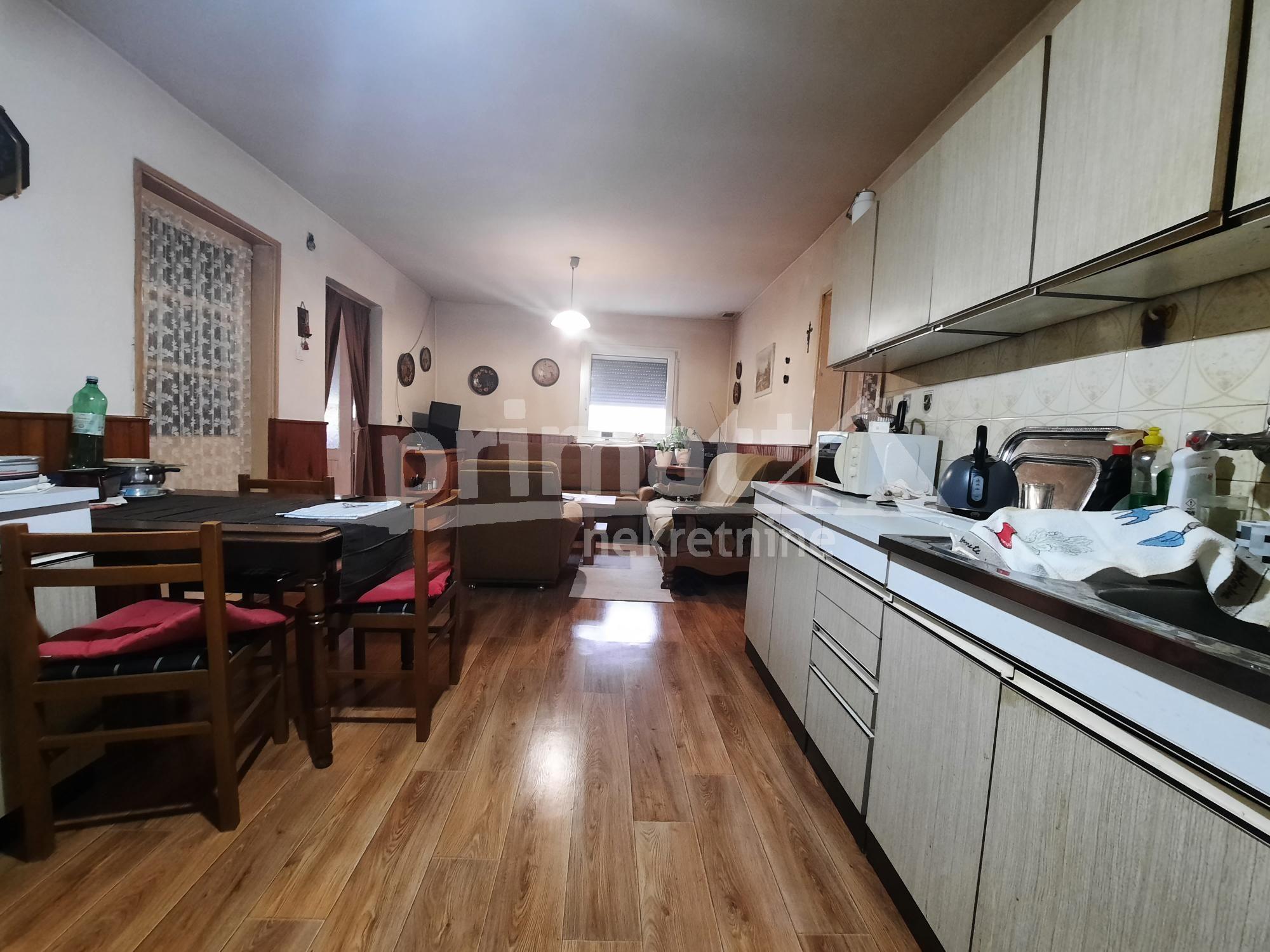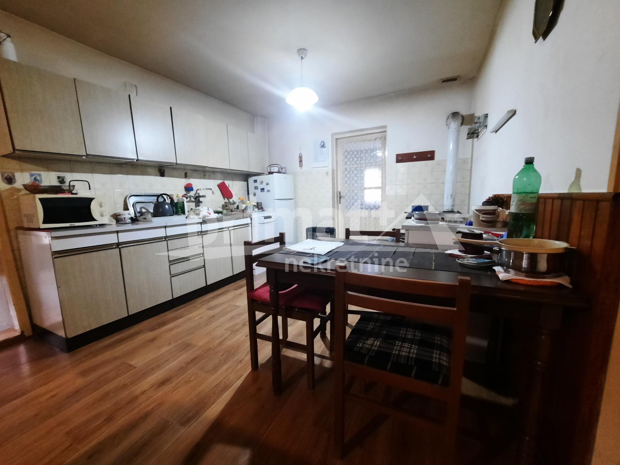 Opis: Prodaje se imanje unutar naseljenog mjesta, koje se sastoji od prizemnice sa 100m2 useljive, uređene površine te gospodarske zgrade. Kuća ima 4 spavaće sobe, kuhinje, prostranog dnevnog boravka te kupaone. Dodatni stambeni prostor se može urediti u visokom potkrovlju, a također i u visokom podrumskom dijelu koji ima posebni ulaz sa boka kuće. Imanje nadalje čini legalizirana gospodarska zgrada od cca 50m2 koja zajedno s kućom čini zatvoreni dio dvorišta, a iza gospodarske zgrade se prostire velika zelena okućnica na 7.400m2. Dio okućnice je plodna oranica, a dio livada.