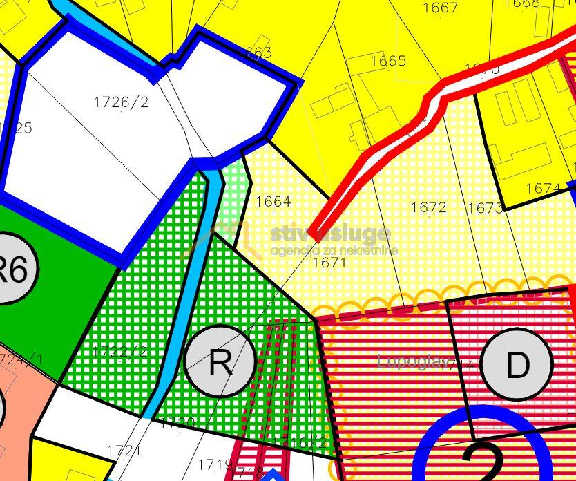Od ukupne površine zemljišta građevinsko područje iznosi cca 1397 m2 dok je ostatak zemljišta od 200 m2 van građevinskog područja.
