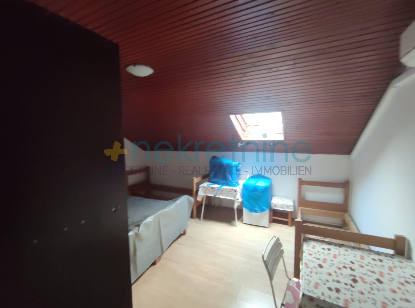 U prizemlju se nalazi veliki poslovni prostor od dva dijela, glavni dio od 128 m2 sa dva sanitarna čvora, te drugi poluzatvoreni prostor od 116 m2. U stražnjem dijelu nalazi se dvorište i vrt koji mogu biti prenamjenjeni u vlastiti parking u pogledu bavljenja turizmom.