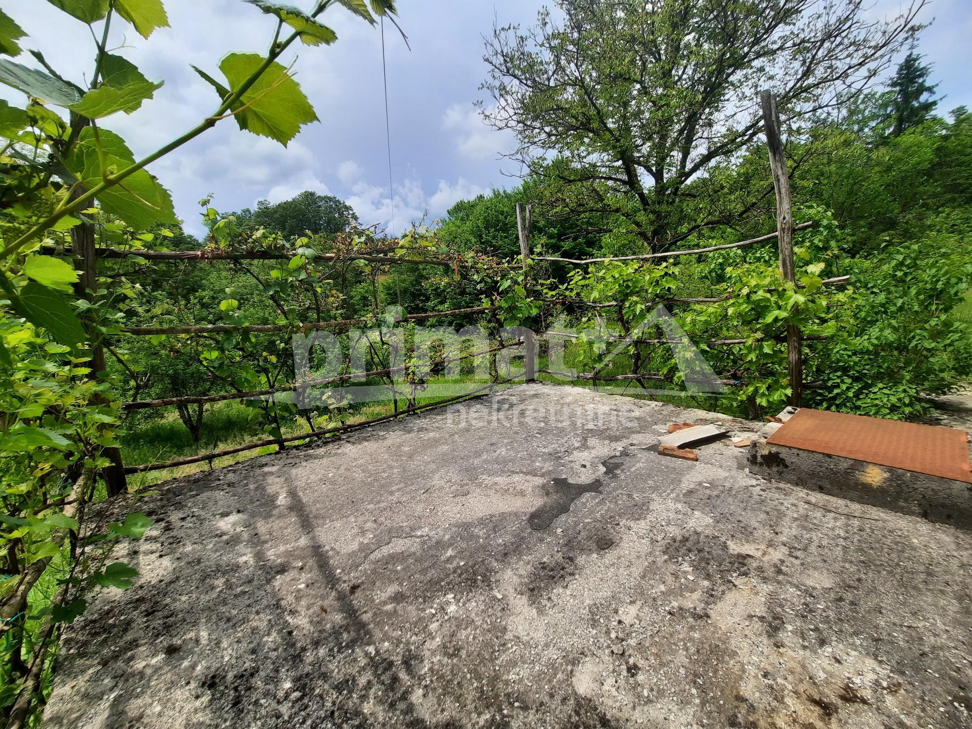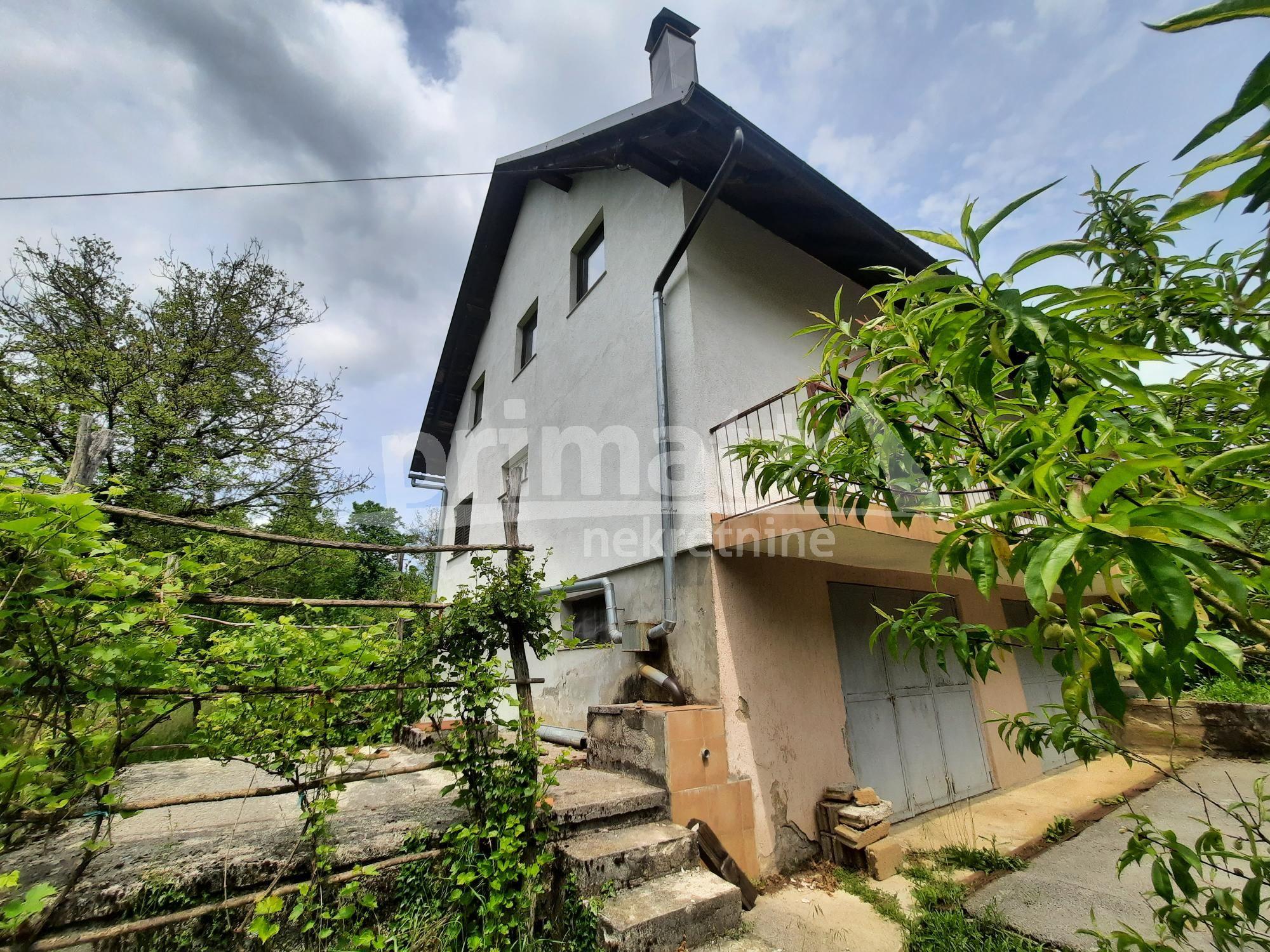 Opis: Prodaje se kuća s okućnicom od 1600m2 u vrlo mirnom predjelu sela . Kuća se sastoji od prizemlja sa 2 garaže, prvog kata u kojem je stambeni dio sa novouređenom kupaonom, 2 spavaće sobe te dnevnim boravkom i kuhinjom. Taj kat kuće je u vrlo visokom stupnju preuređenosti te je potrebno izvesti samo završne radove. Prostrano potkrovlje ima svoj ulaz i nije uređeno. Priključci struje i vode su aktivni. Kuća se nalazi na kraju asfaliranog puta i zadnja je prema obližnjoj šumi, što cijelom imanju daje relativnu osamu.