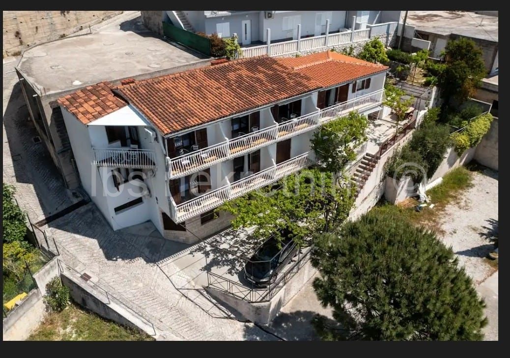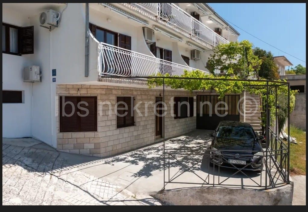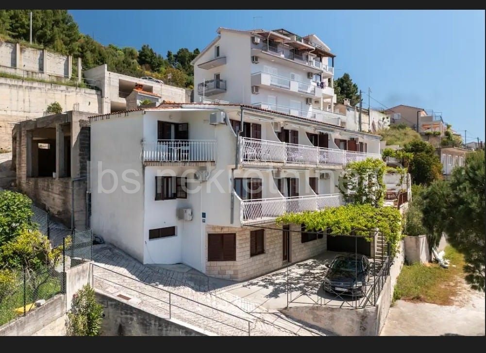 Apartmanska kuća s otvorenim pogledom na more i otok Brač smještena u trećem redu od mora umalom turističkom mjestu na 5km udaljenosti od Omiša.