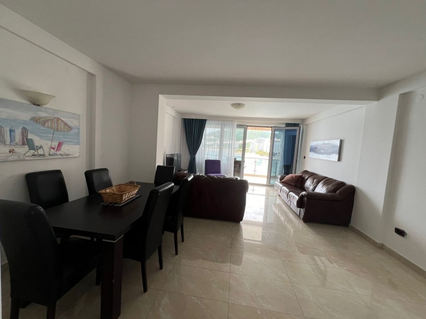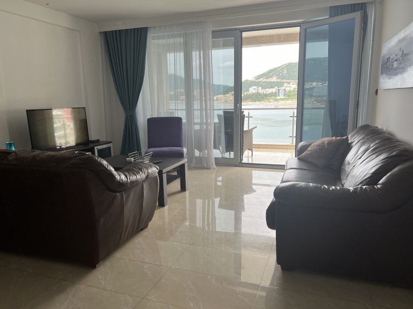 Opis: Prostodan dvosoban stan u Rafailovici. 1 linia. Pogled na more. 2 kupatila, 2 spavaci sobe. Uredni papiri
