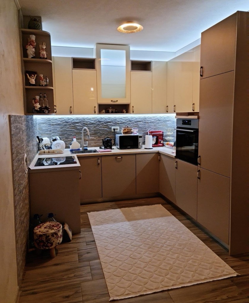 Struktura prostorija: ulazni hodnik, kuhinja, dnevna sa trpezarijom, tri spavace sobe, dva kupatila, veca terasa, garaza.