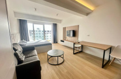 Opis: idp2445 Studio in a new house with a swimming pool for sale. The studio has 43m2 with a terrace included, is located on the 2nd floor, the building has an elevator, the apartment is oriented to the south. The apartment has a double bed, sofa, TV, air conditioning, refrigerator, dishwasher and washing machine, table, etc.
