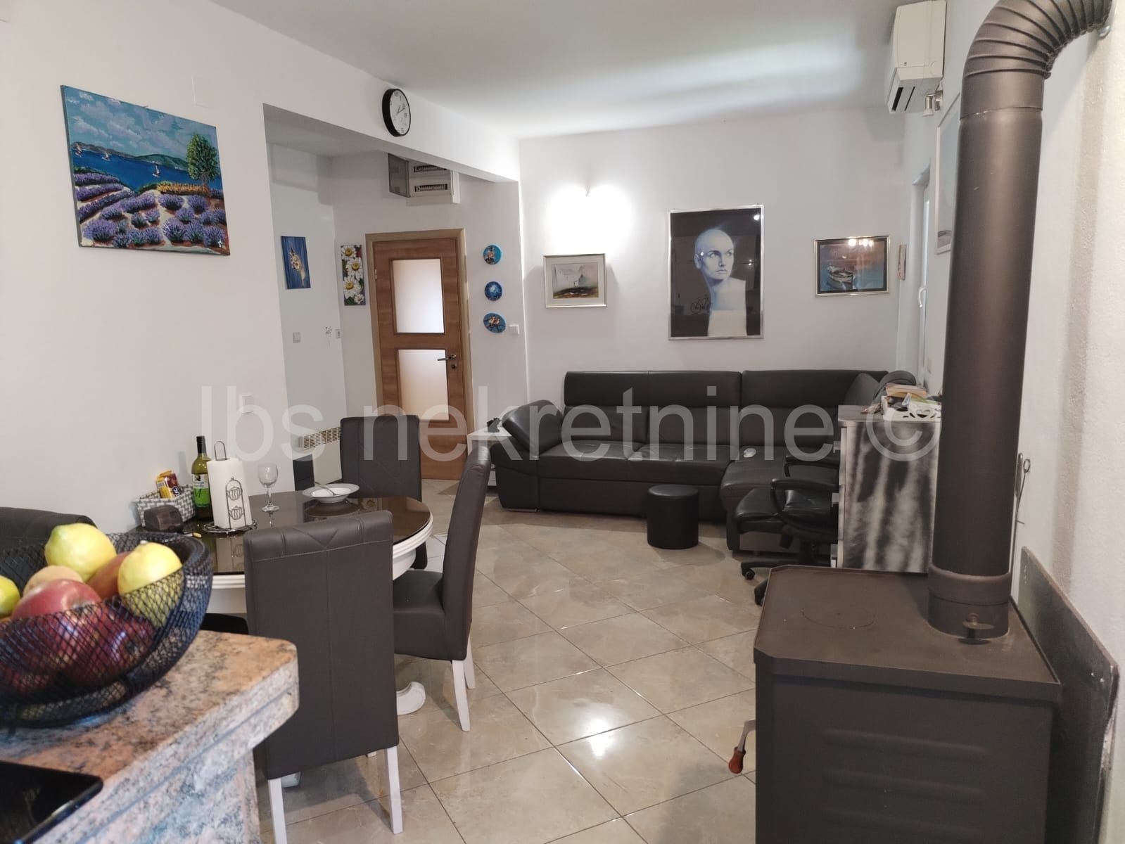 Opis: Posredujemo u prodaji dvosobnog stana u visokom prizemlju kuće. Stan se se sastoji od predulaza, kupaonice, wc-a, kuhinje s blagovaonicom i dnevnim boravkom, dvije spavaće sobe i predsoblja, ukupne površine 70,52 m2. Stan ima poseban ulaz i ograđeno dvorište. Stanu pripada i konoba ( trenutno u funkciji ateljea) površine 20m2 položena u suterenu kuće, natkrivena terasa te dva pomoćna objekta površine 20 i 8 m2. Poštovani kupci, razgledavanje nekretnine moguće nakon potpisivanja Agencijskog ugovora o posredovanju a u skladu s Zakonom o prometu nekretninama i Zakonom o zaštiti osobnih podataka.