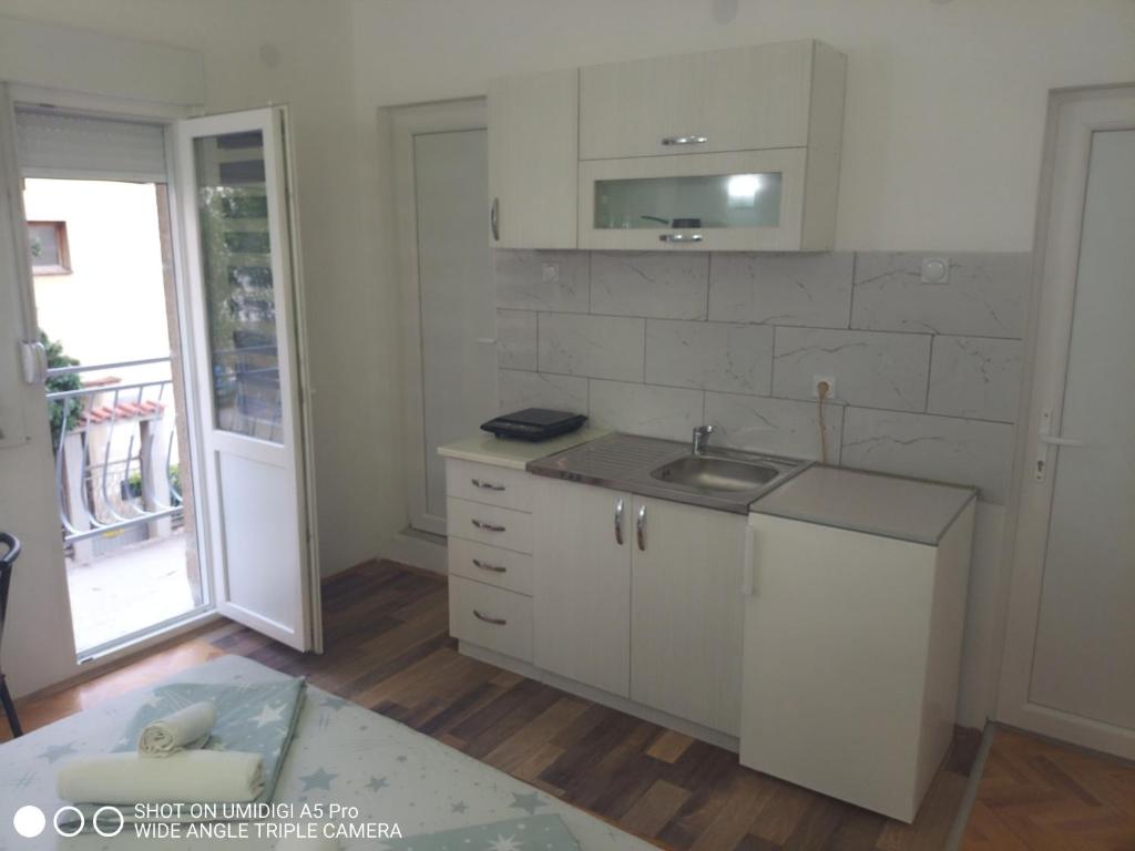 Opis: Sve što je potrebno za boravak u dvoju u Nišu, ali i više od toga, nudi vam apartman Relax 5.Nalazimo se u neposrednoj blizini POLIKLINIKE NEUROMEDIK i RODA CENTRA U NIŠU. Sa adresom u Bukovičkoj ulici i pogledom na dvorište, ovaj apartman smešta vas u mirniji kraj grada u okviru opštine Pantelej. Ovaj studio od 28 kvadrata pametno dizajniranog prostora idealan je izbor za putnike u paru. Za dobar san biće zadužen veliki bračni krevet, pored kog se nalazi i čiviluk za odeću. Na rešou u kuhinji, koja je potpuno opremljena posuđem potrebnim za kuvanje i frižiderom, možete spremati obroke tokom boravka. U kafi ili hrani možete uživati za trpezarijskim stolom ili na terasi sa pogledom na dvorište. Kupatilo u sklopu apartmana dolazi potpuno opremljeno toaletnim proizvodima, a tu su i papuče, peškiri i fen. Budite spremni da svu dodatnu posteljinu i peškire doplatite. U cenu su uključeni i TV sa nizom satelitskih kanala, WiFi i oprema za roštilj u dvorištu objekta. Bezbedno parking mesto dodatni je plus Relax 5 apartmana....